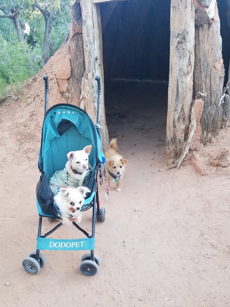 After that, we stopped in Kanab, UT for lunch. It has pretty red cliffs, still part of the Grand Staircase. I didn’t take photos. We stopped to splash in the swim beach at Lake Powell. It was HOT. So hot, Kachina insisted she ride in the stroller with Sazi and Maizzy. It was never meant for 3 dogs, but we managed. They waded a little, which was odd cause they hate water. I hauled the stroller back up the hill behind me . . . Had to stop to wipe sweat out of my eyes.