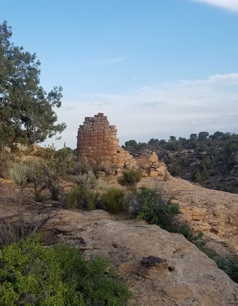 As we got closer, Sleeping Ute Mountain came into view. Then, we waited for the heat to die down for a short hike at the ruins. We will go for a quick hike tomorrow AM early, too. Then home.