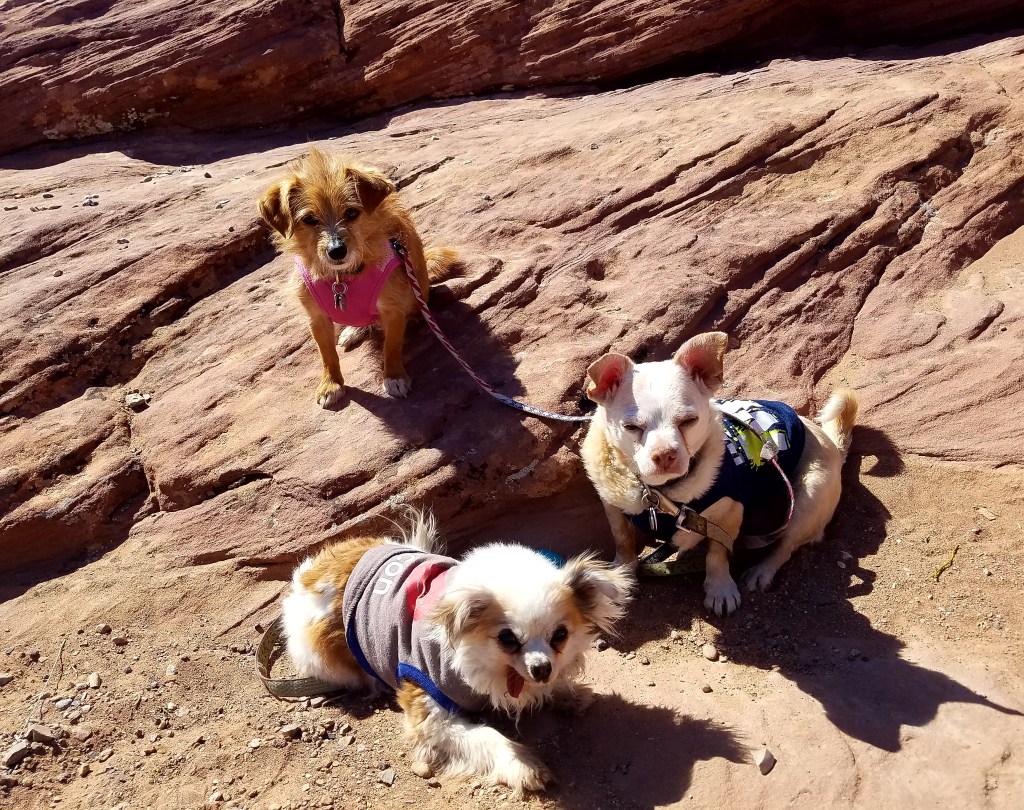 The road got even more difficult when we returned from our first trip together. We had gone to Moab for the President’s Day Weekend and hiked. Sazi did “ok” with it, she was getting better being around people at a distance. We got back and she began acting funny – she wouldn’t climb the stairs or use her stool to get up on the couch. She just barked and waited for me to lift her. I wasn’t really sure what was causing the issue, but Kachina watched over her like a hawk and I knew there was something wrong with her.