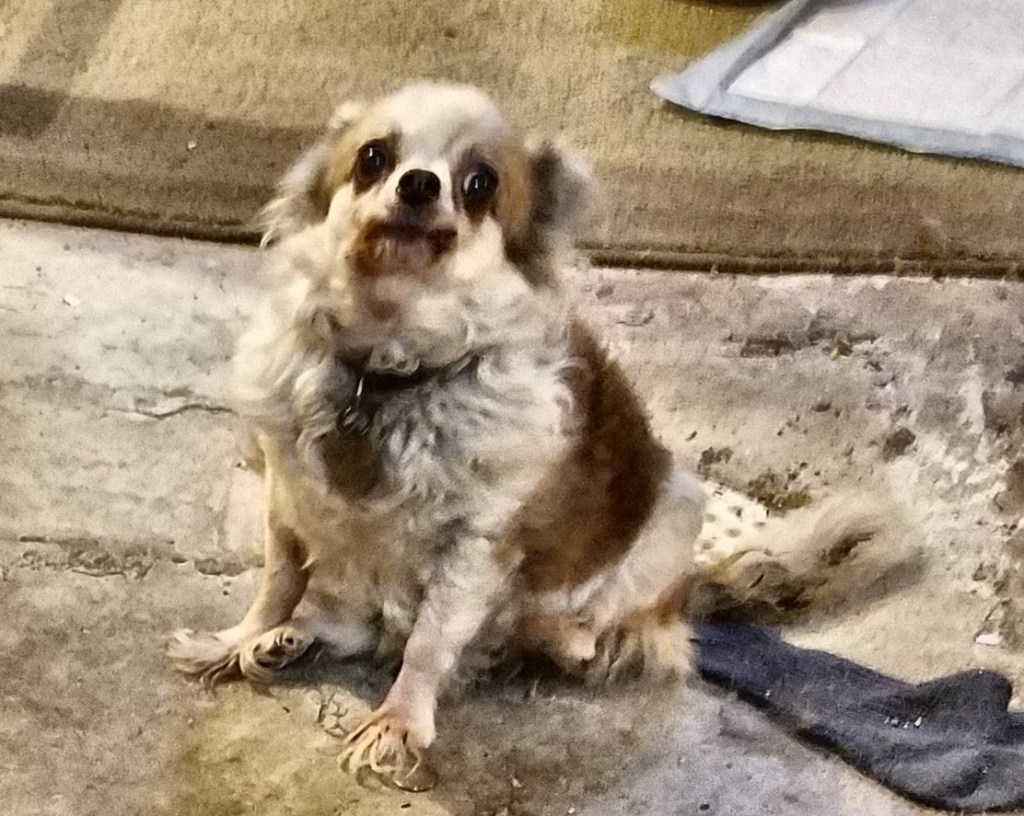Anyway, like with Kachina, it was another one of those Black Canyon Animal Sanctuary Facebook posts that drew me in. There was a little dog who Debbie was called to take from a social services case. It was a sad story and suffice it to say Sazi came from isolation and poverty. Debbie’s posts told the story of a little dog so scared that she had to be caught with a blanket and would not come our of her carrier except at night for food. She was both cute and ugly from the few photos that Debbie was able to post. Well, I thought, maybe a month or two in a home environment would help socialize her. So, I said I would foster her.