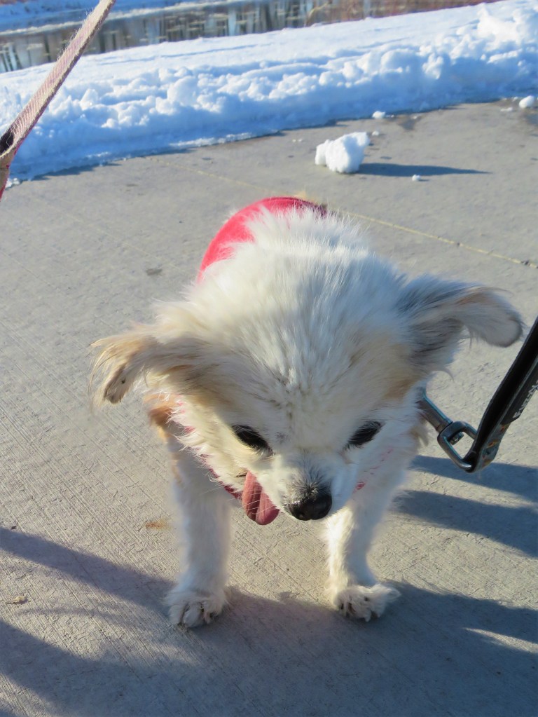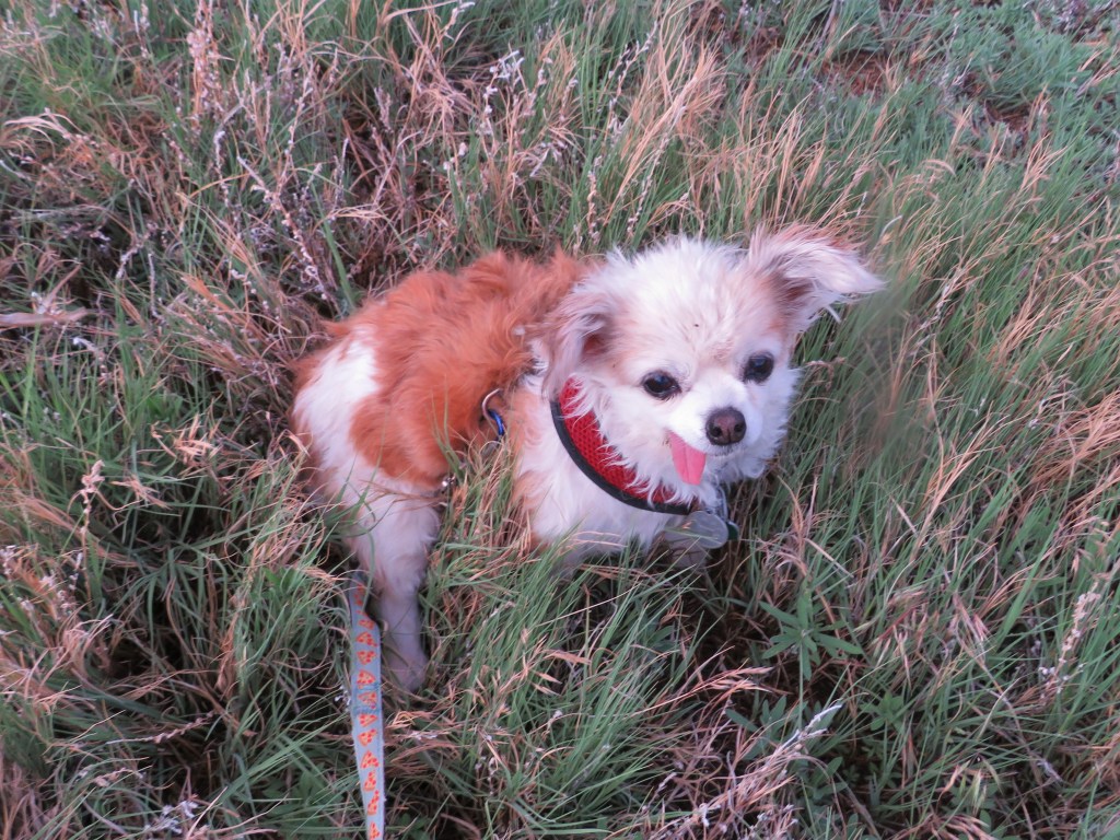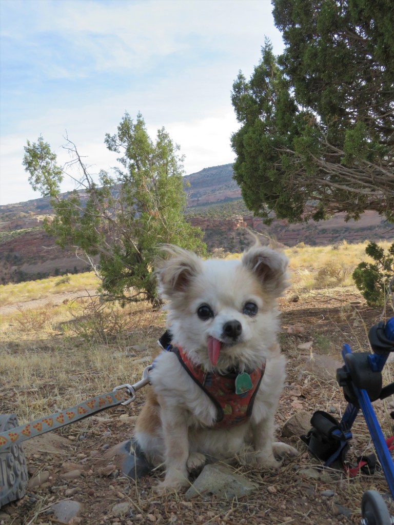 Come spring, we were hiking more and she broke both back nails. I assumed it was another flair and put her on rest. I was getting her out of her purse carrier after our walk one Sunday and I dropped her. I was stressed from work and she got interested in food she saw and wiggled in my arms when I wasn’t paying attention. She fell to the cement porch out of my arms. It was one of those moments I won’t forget – her head hit and she had a little seizure. I thought that was it – I would have to euthanize her. But, she came-to quickly. She was so mad . . . I picked her up and she snapped and growled. I put her down inside and she drug her back legs behind her. I was horrified.