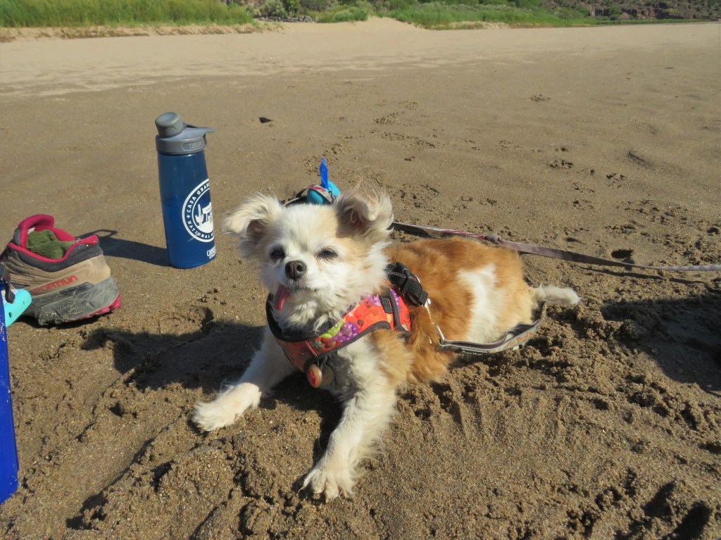 One thing you need to know about Sazi is that she is an imp. She is a little mischief-maker. For a dog that is now 11, she acted like a puppy in many ways. So, when we got home from our last camping trip of 2019, I left her with the other dogs in the yard and went to plant a yucca that I had just purchased on our trip. I was stressed about work, again, and probably not payine enough attention. I went to check on the dogs – there were Kachina and Maizzy where I left them, but no Sazi. I started searching frantically and calling her. The woman across the street called back to me (right across from where I planted the yucca) and she said she had Sazi. I saw a limp dog wrapped in a towel in her arms. She told me she had been hit by a car. My heart sunk.