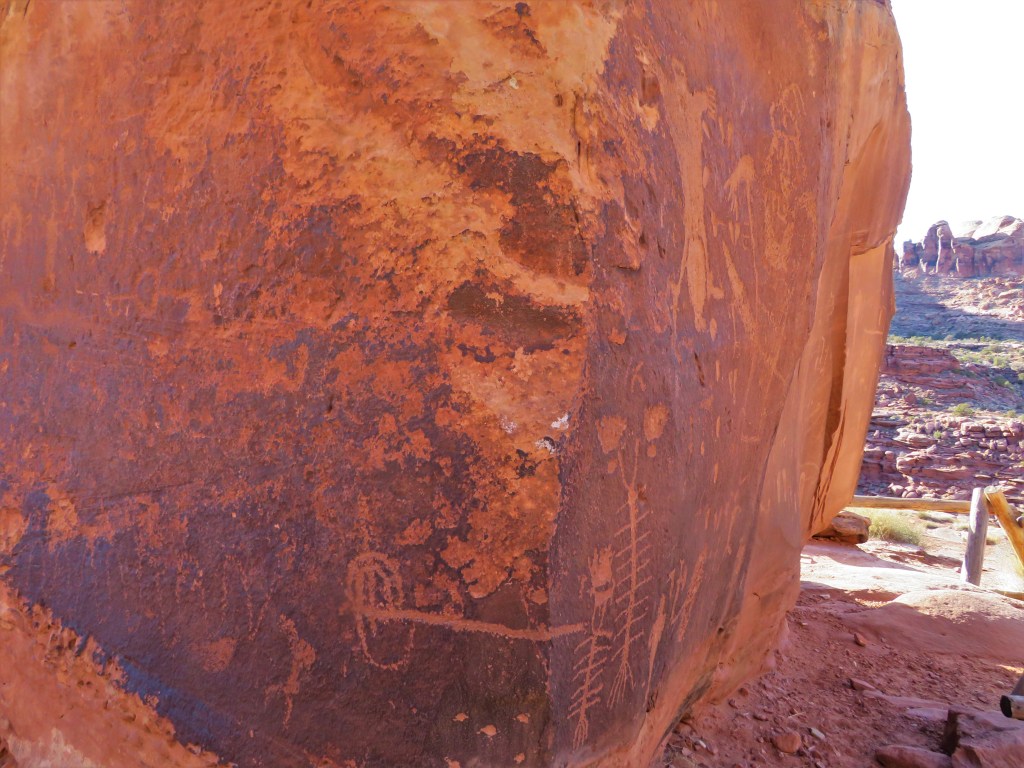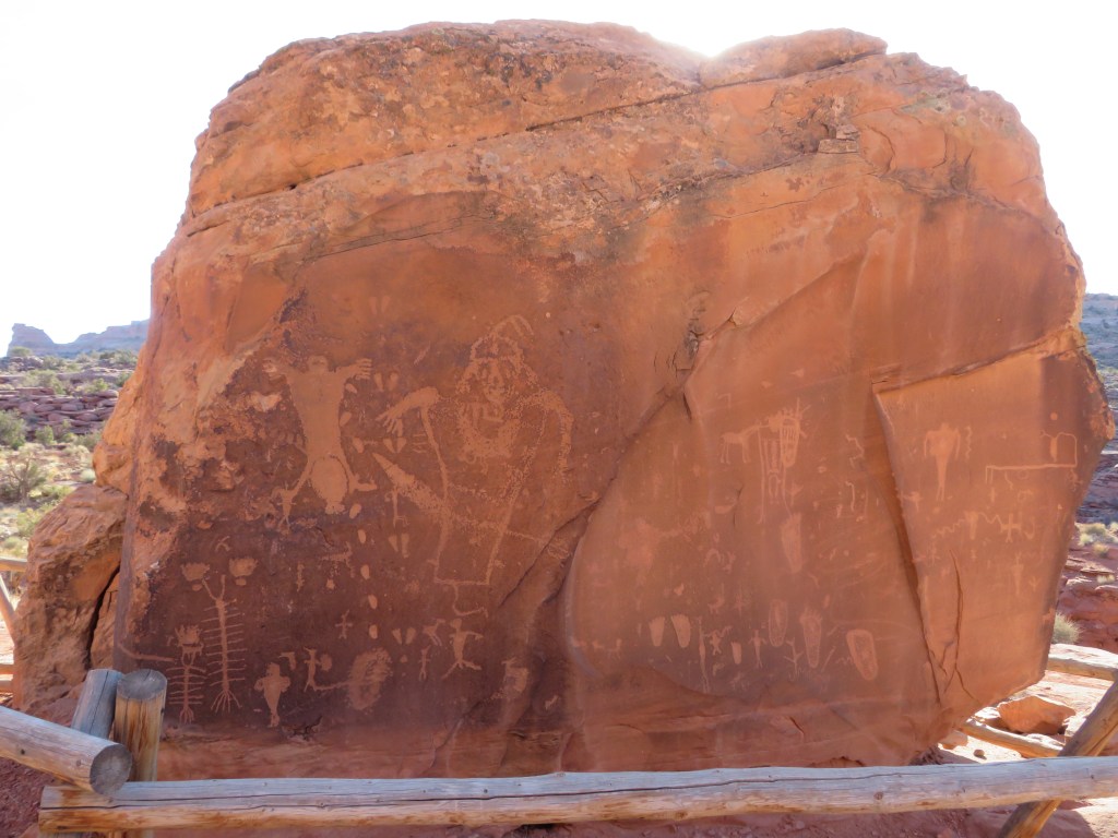 The Birthing Rock is a Fremont Indian petroglyph. The birth scene is a favorite of mine – people have said that it is a midwife (the big figure that looks also like an alien) next to the baby. It is just a rock in a field, except now there is a fence and signs. None of that was there when I went with you mom to see it the first time 30 years ago.