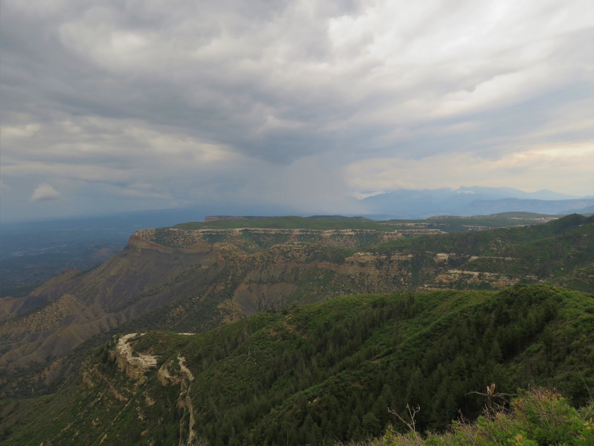 My plan was to get here early afternoon, not have rain delays, and see the ruins today. Well, it was close to 5 before everything was set up and we headed up the road. We went to the high point turnout and I got some cool photos of the monsoon clouds over Mesa Verde. All the traffic was headed out and I decided that Moki needed a walk before bed and that we could do ruins the following day. And, so, we walked the rather long campground loop, ate dinner, and called it a day. I recalled camping here with my daughters maybe 30 years ago but there were still things I remembered about the campground. Where have the years gone?