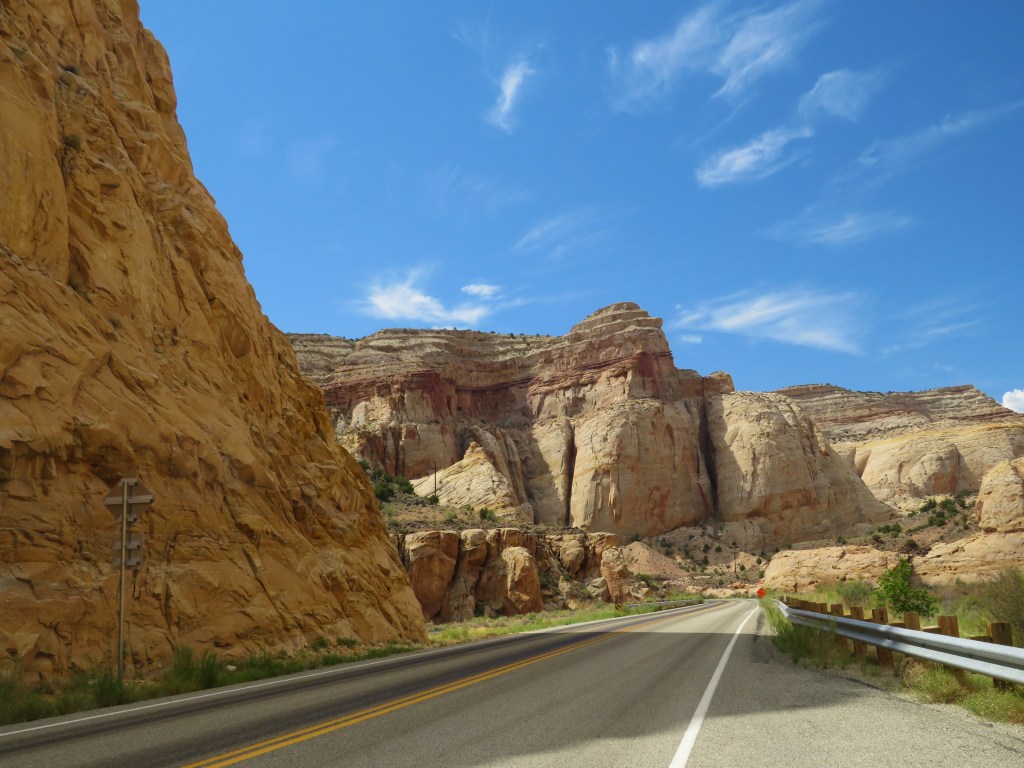 There was construction at Capitol Reef, so I was a little disappointed when we had to follow a pilot car most of the way through. I have planned to stop for more pictures. I managed to get a couple before we were on toward Torrey and our turn onto Utah 12.