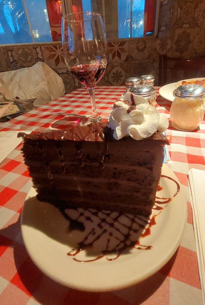 I went for dinner at Pasta Jay’s, as usual. I was disappointed in the gluten-free menu changes this year, but the dogs liked the left overs and I enjoyed the chocolate cake.