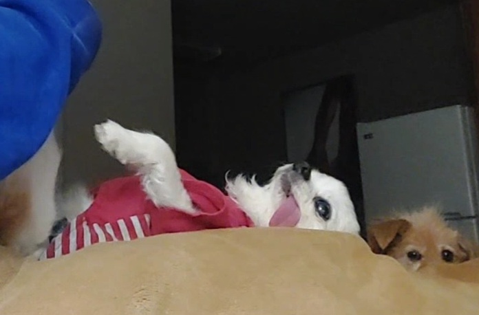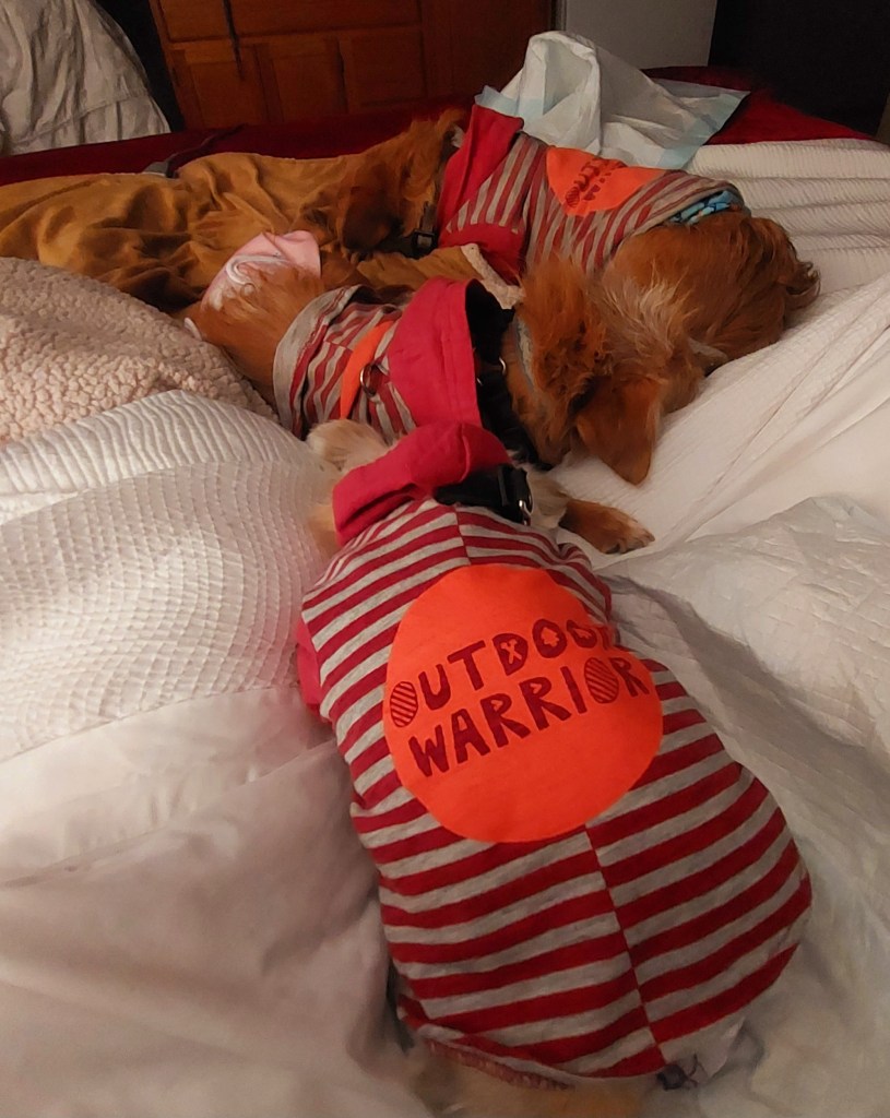 During dinner, I got the message that my daughter had an orchid delivered to my porch at about noon. I am like – OMG, it will never survive. I got ahold of my neighbor and she went and rescued it – by some miracle the cold wind hadn’t started at home yet. It is still in bloom as I write this on 3/29/22. I named it Blizzard at first. Now, it is called Sazi’s Legacy. And, after dinner, the dogs enjoyed more leftovers. Sazi continued to be pain-free and enjoying her snuffle mat.