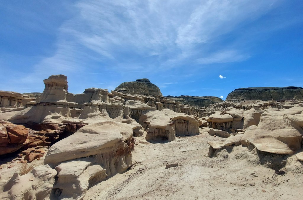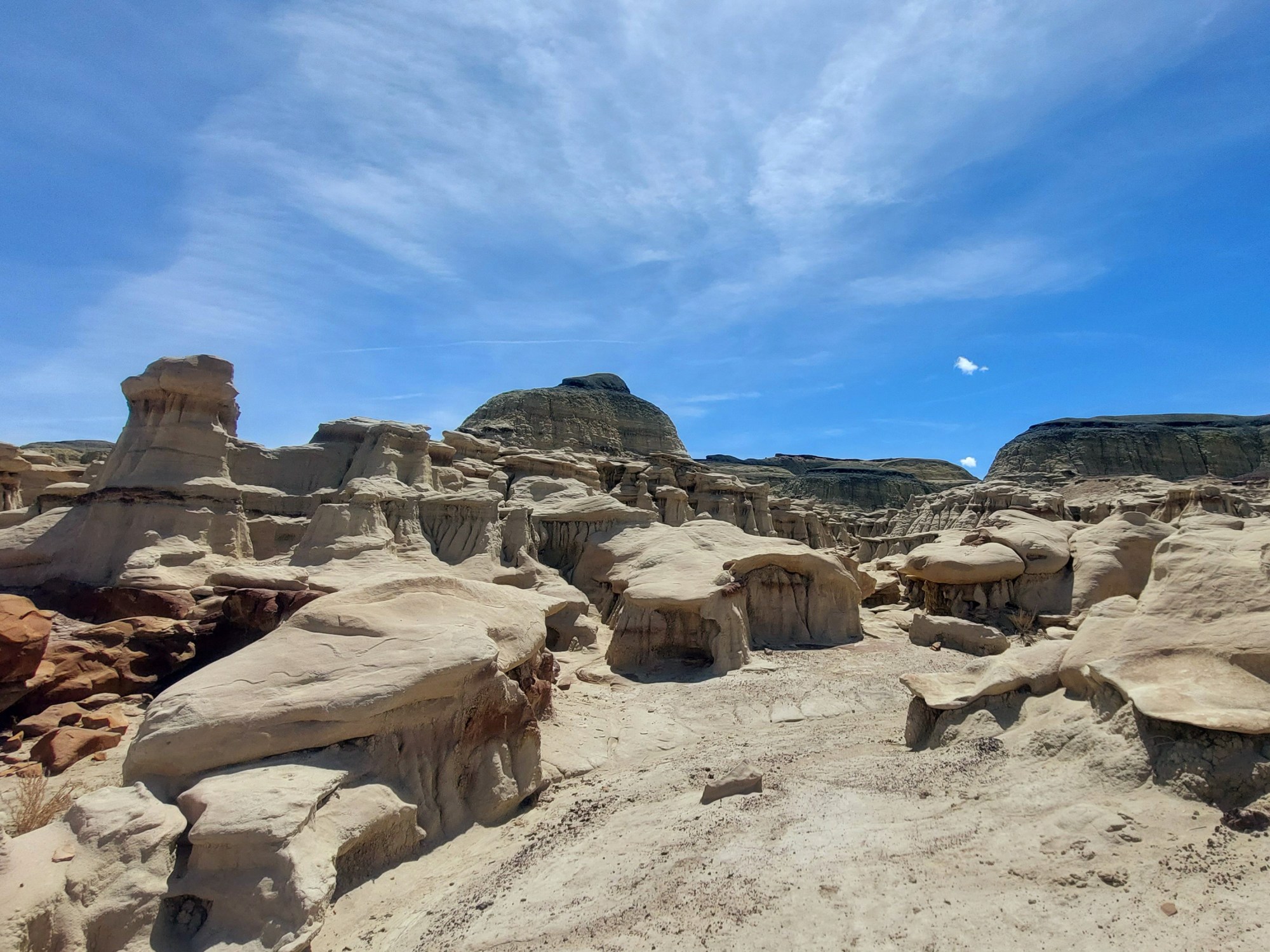 Bisti Badlands is an awesome remote place near Farmington. It’s the reason we diverted through Farmington. We drove past it 4 years ago, but I was nervous about it. The internet talks about people getting lost out there. I can understand hoodoo chasing and how one might get lost, but if you put good boundaries on it – time, distance, hiking app – it’s fun and safe. It reminds on Goblin Valley in some ways. We hiked here 2 years ago, so it was more familiar today.