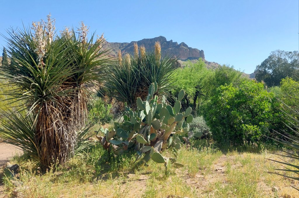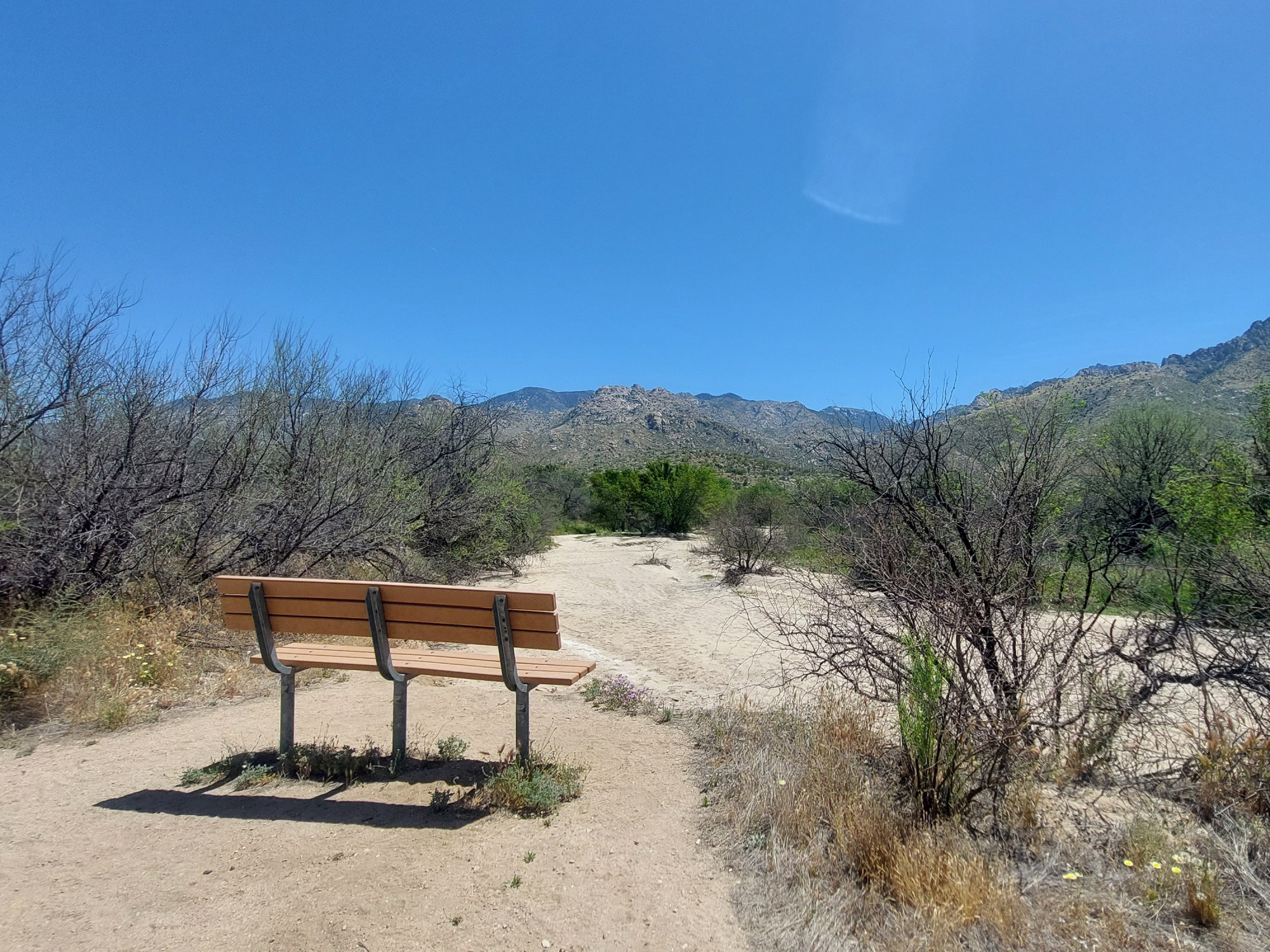 We drove on and stopped at Boyce Arboretum. It’s another Sonoran favorite that Maizzy and I found serendipitously. In the early days, I only booked motels a couple days ahead. A couple times, we couldn’t find dog friendly hotels on route, so now I book ahead. Anyway, the Arboretum is gorgeous even though still pretty hot for the girls. We may go back tomorrow.