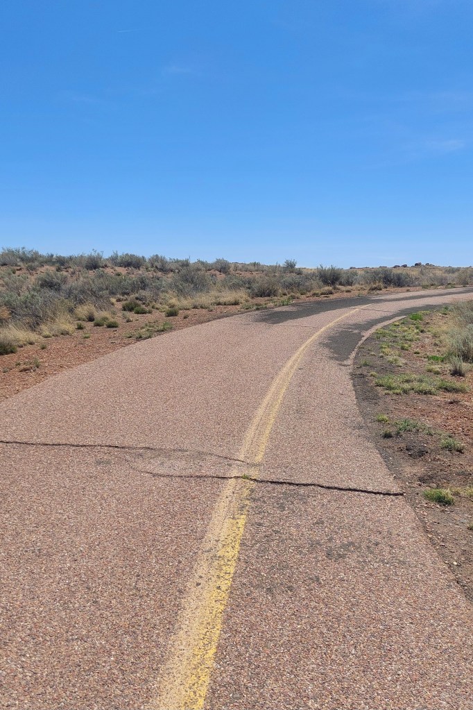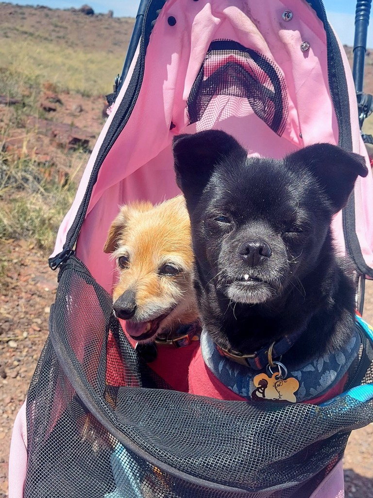 Today, as I drove, I remembered the day I woke up in Show Low with suspected norovirus. I thought it was something I ate or a 24-hour thing. But, OMG, no. It took months to get fully over it and I ended up giving up lactose and gluten to fix it. I actually drove almost 200 miles that day. That’s brave – but likely more optimistic than anything. I remember trying to stop at Petrified Forest long enough to get a photo of the pups, but I got right back in the car because I was so sick. It was awful on a road trip.