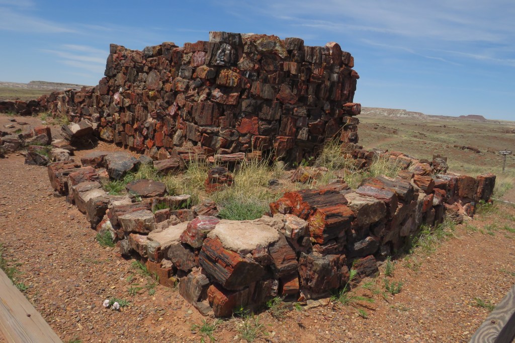 We climbed back up on the Colorado Plateau and visited Petrified Forest, again. Two hikes today – Agate House and Crystal Forest. And, yes, it got pretty windy this time. Kachina was dragging on the hike, I think she may be sore from the hike yesterday. So, she and Koko eventually rode in the stroller together. The Petrified Forest is like comfort food, I guess. I’m not particularly drawn to the scenery but it’s dog-friendly and on our route. Lots of memories of this place with all my various pups. I’ll never forget when the woman asked me why I brought my pig on hikes! It was old big ears, pink nose Maizzy.