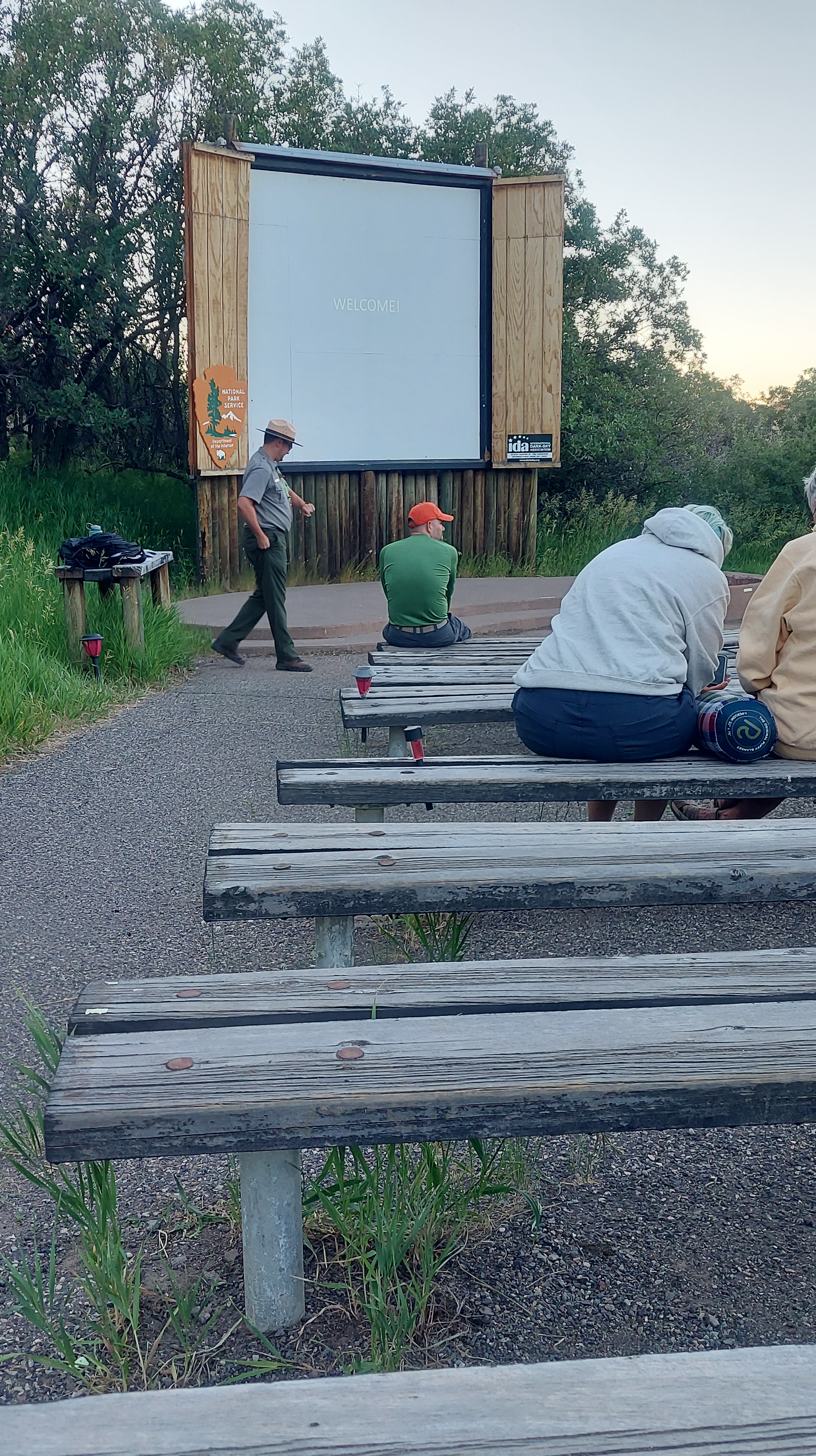 The afternoon was long. It was too hot to do anything physical – nearly 100. The shade disappeared as the sun hit the high noon position. The only place with shade was the island between our pull-in and the main road. I set up chairs and read all afternoon while the dogs slept in the sun. We walked around the campground that night and returned for another ranger show – on bats if I remember correctly. Koko was, again antsy around the strangers. I didn’t think much of it.