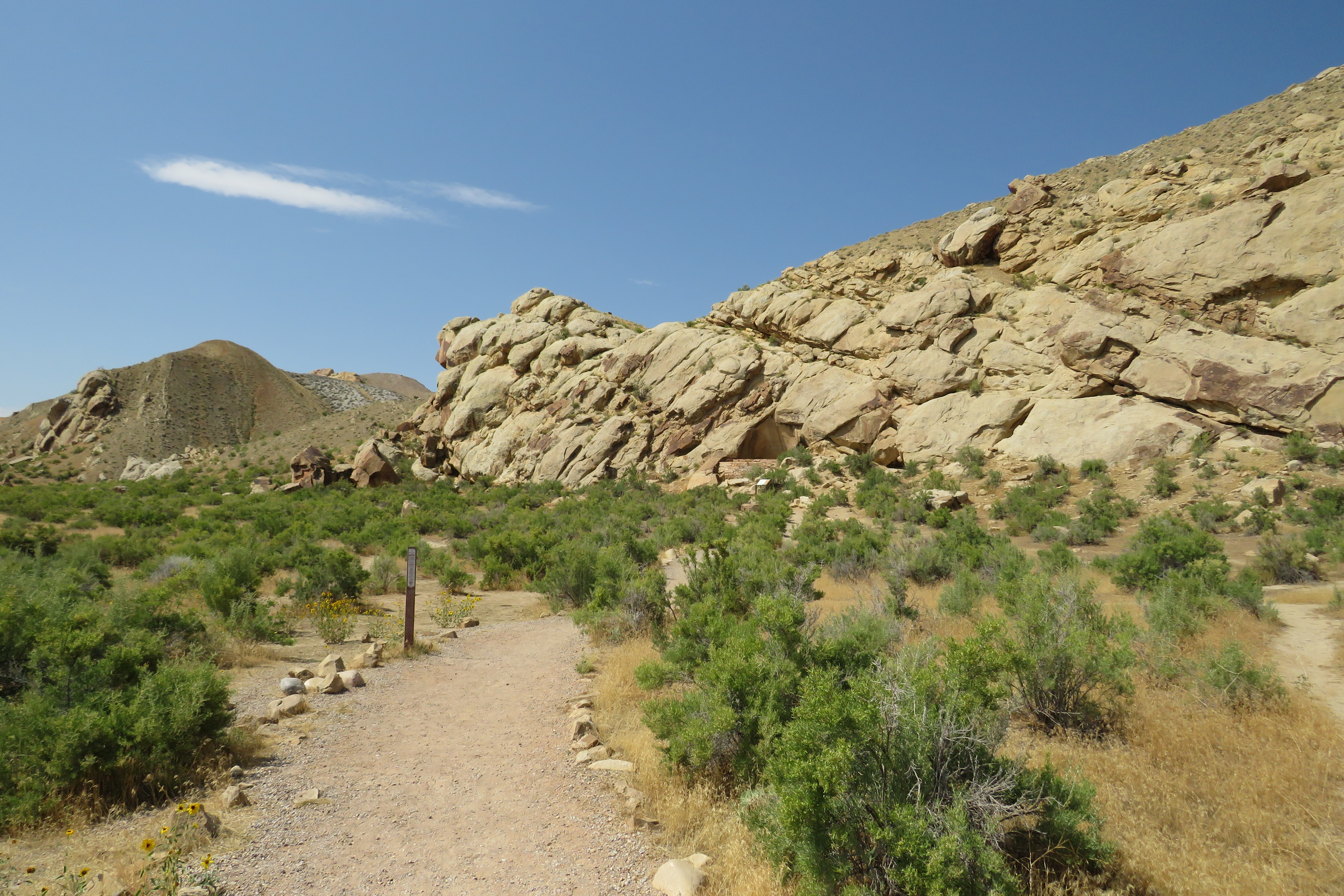 The campsite was hot and I rested with the dogs in the shade until the temperature dropped a bit. We ate and took a short hike toward the Split Mountain campground from our Green River campground site. It was still pretty hot, but there were some awesome sights. Split Mountain is so stunning and the wildflowers were just gorgeous.