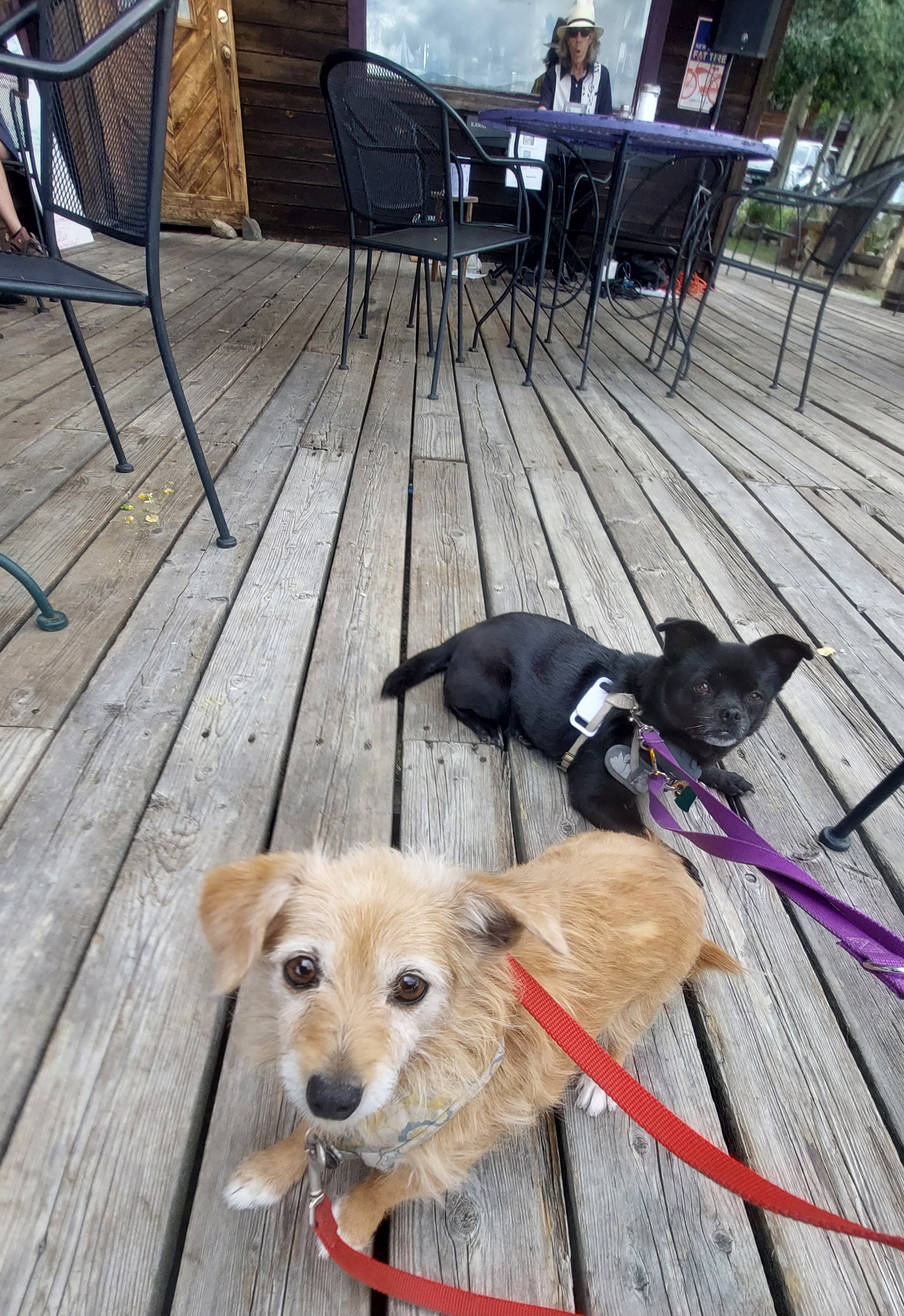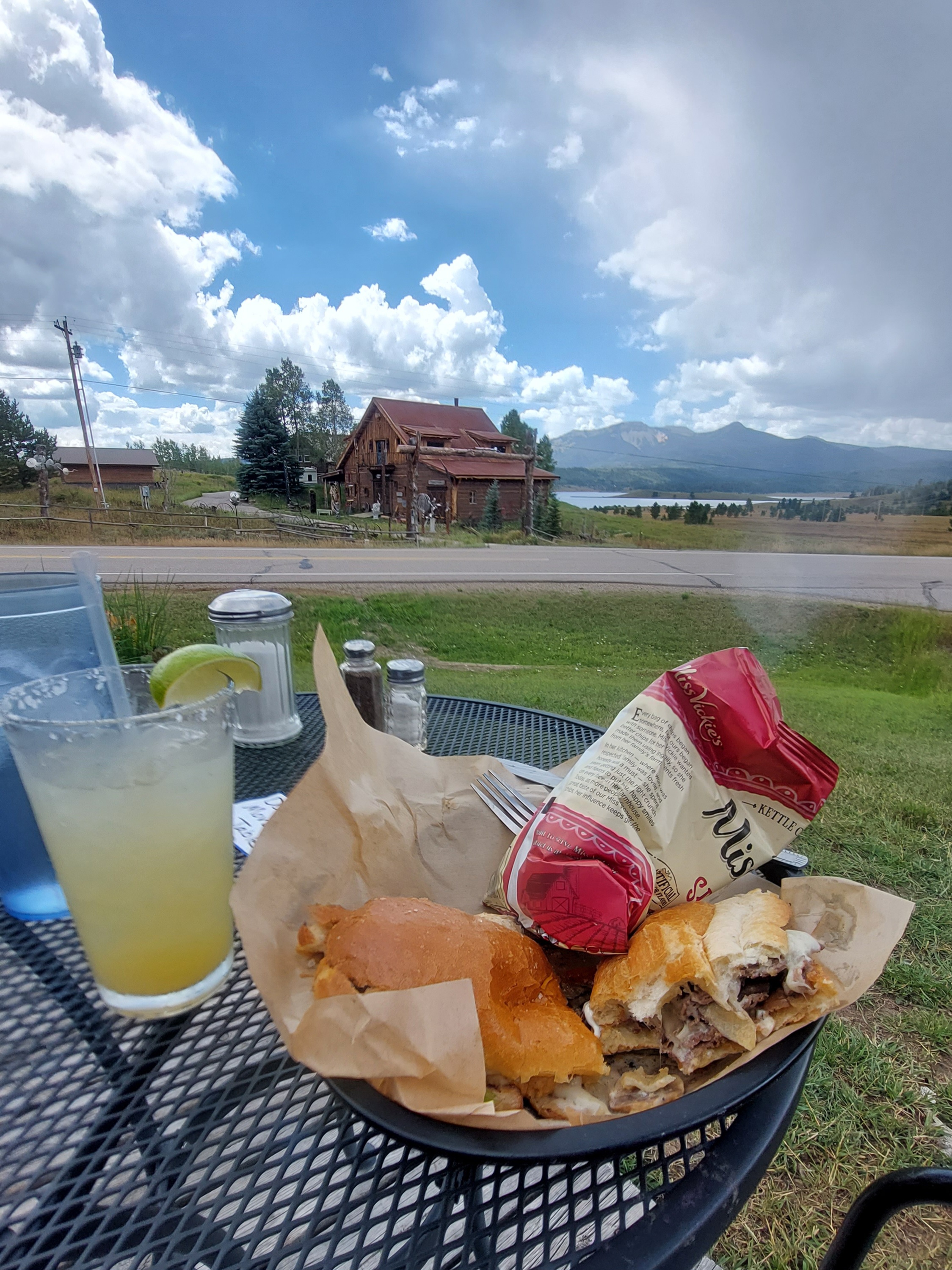 When we got back to the car, we headed to Hahns Peak for lunch. Hahns Peak Cafe was open and the porch is dog friendly. The rain passed over and we had a great lunch listening to live music. Yes, I had a margarita and dessert for lunch! Why not? My last real meal was at Flaming Gorge Resort! I was marveling at Kokopelli and all the changes she had made since her rescue from the hoard just 6 months prior. She looks so happy.
