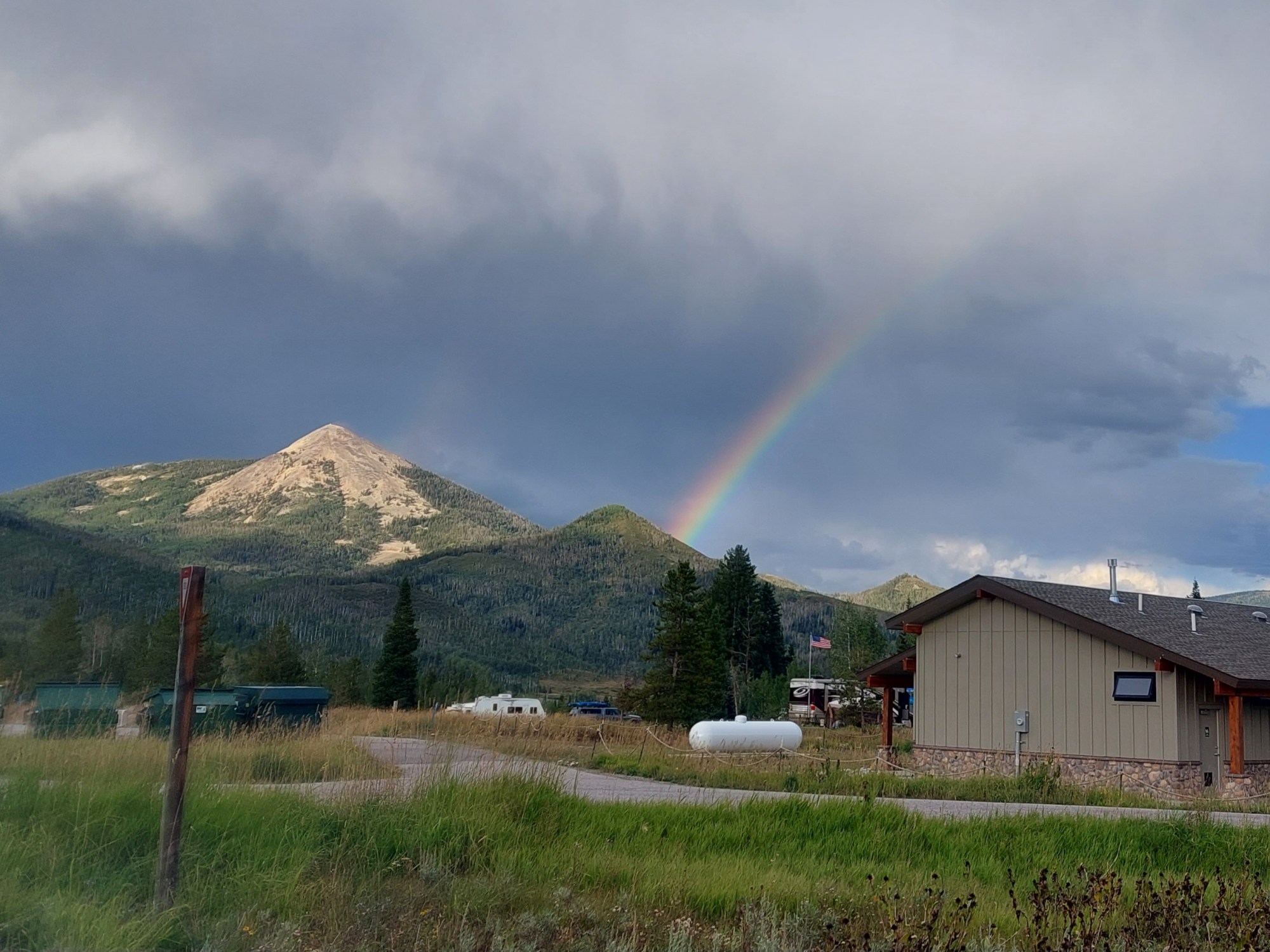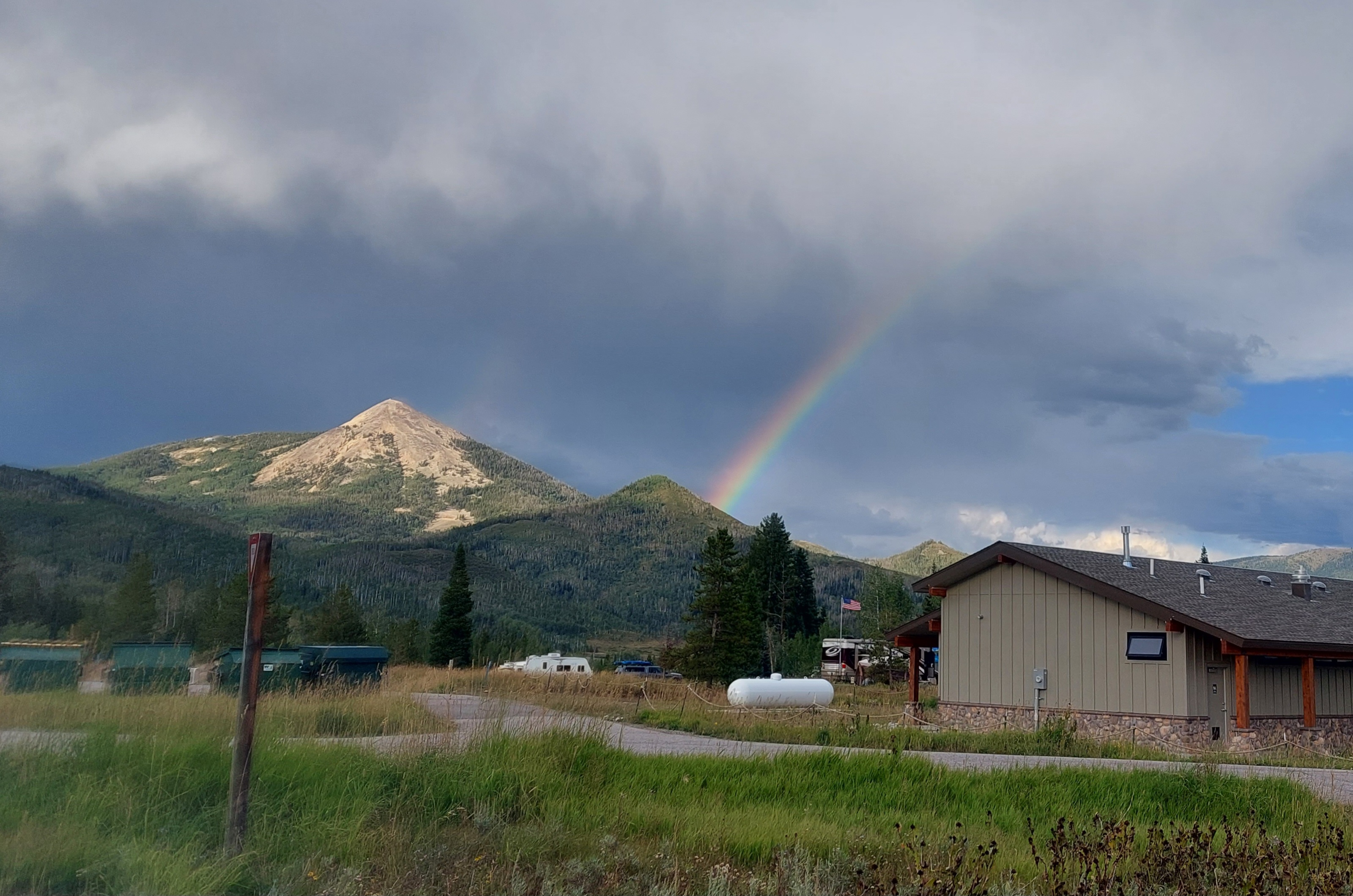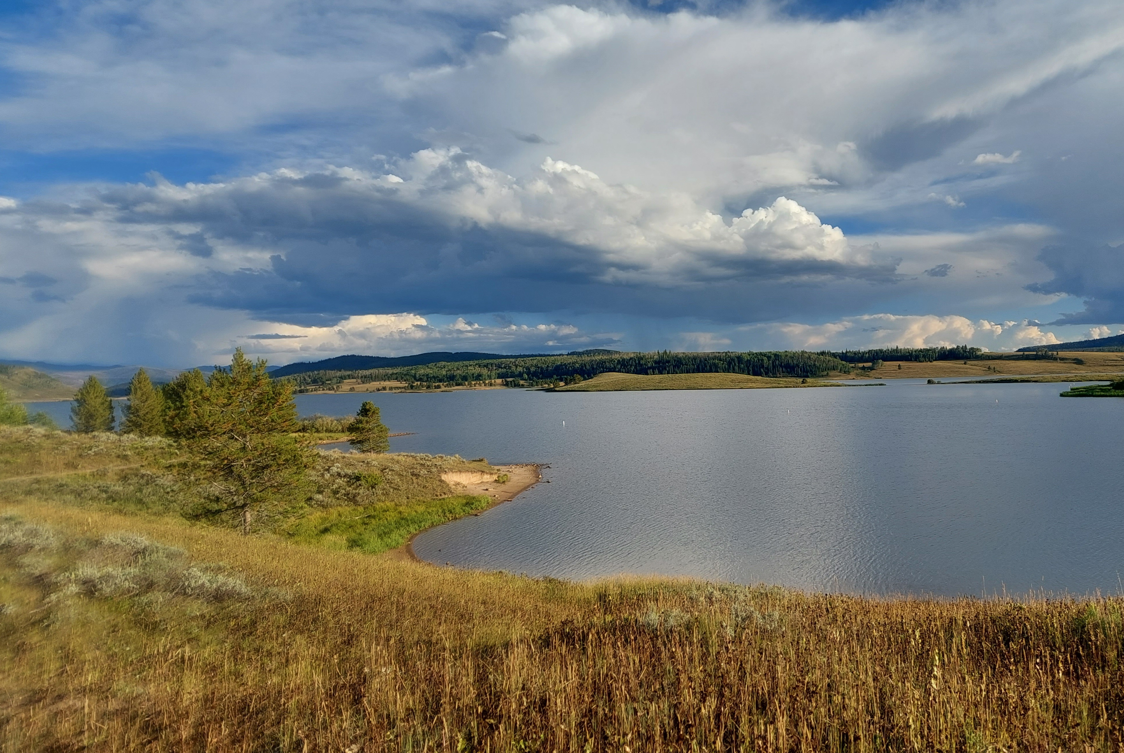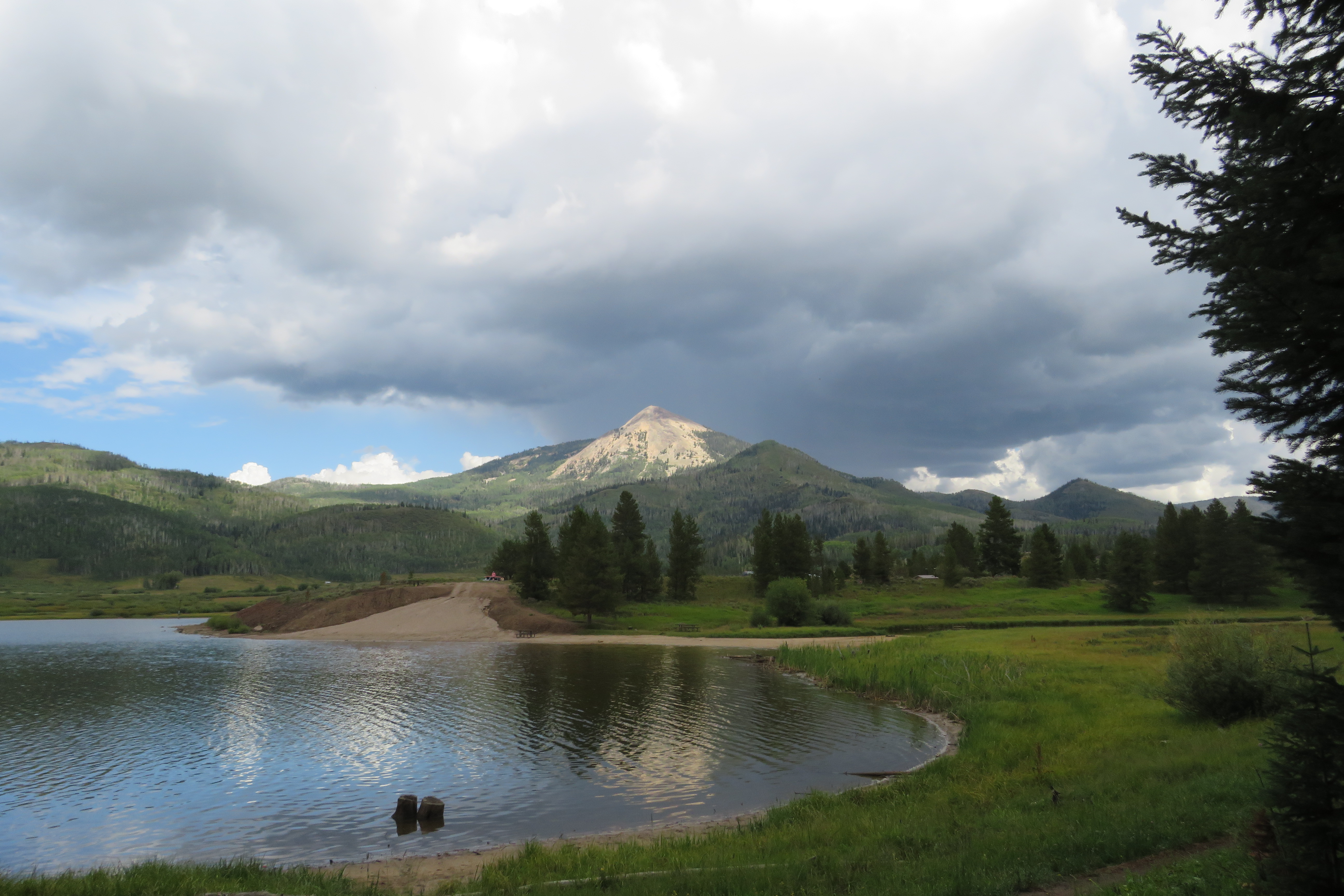 So, after a more leisurely morning, we headed to Tombstone Trail. I enjoy this trail because it is relatively easy for the dogs and has some great views of Steamboat Lake. It was threatening rain and there was thunder as we headed back. I am a fairly brave soul – but mountain thunder still puts a chill in my bones. I know too many stories of people taking silly chances.