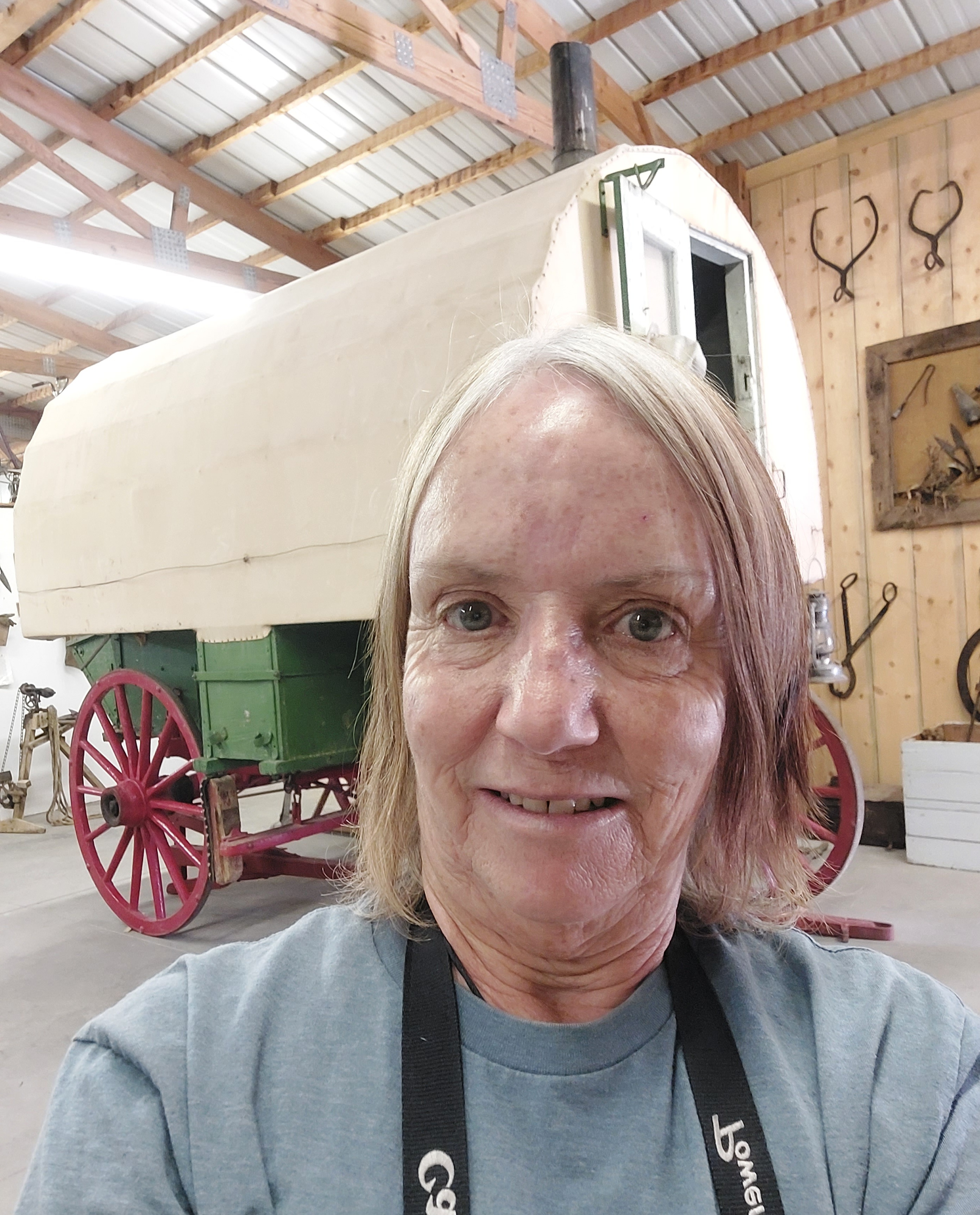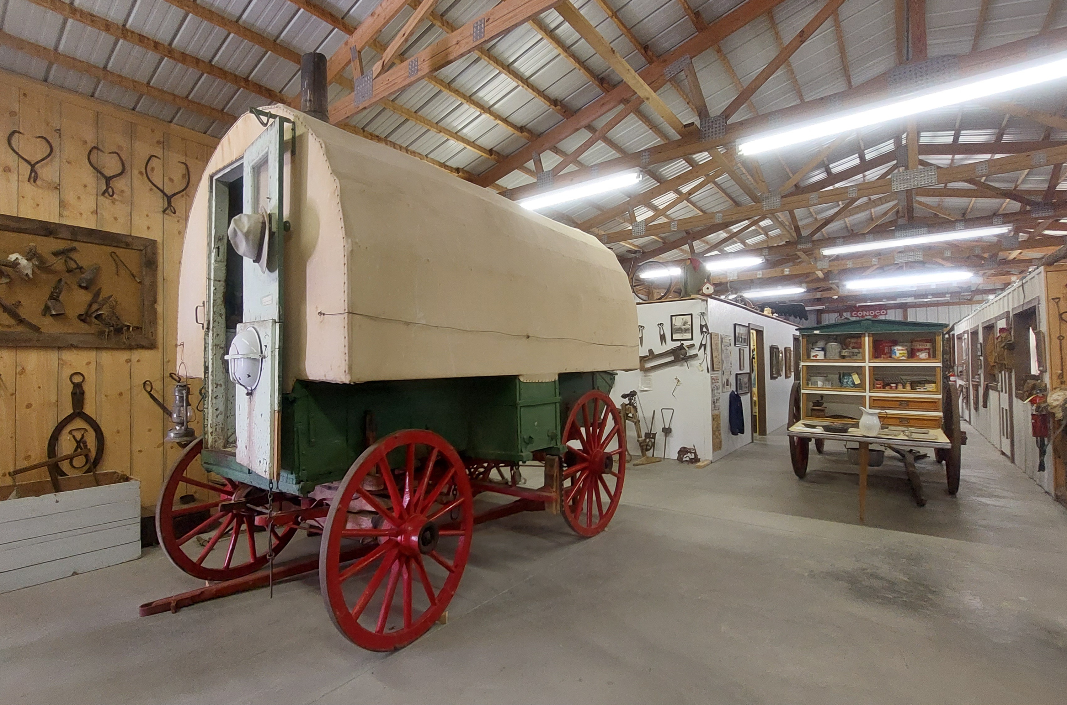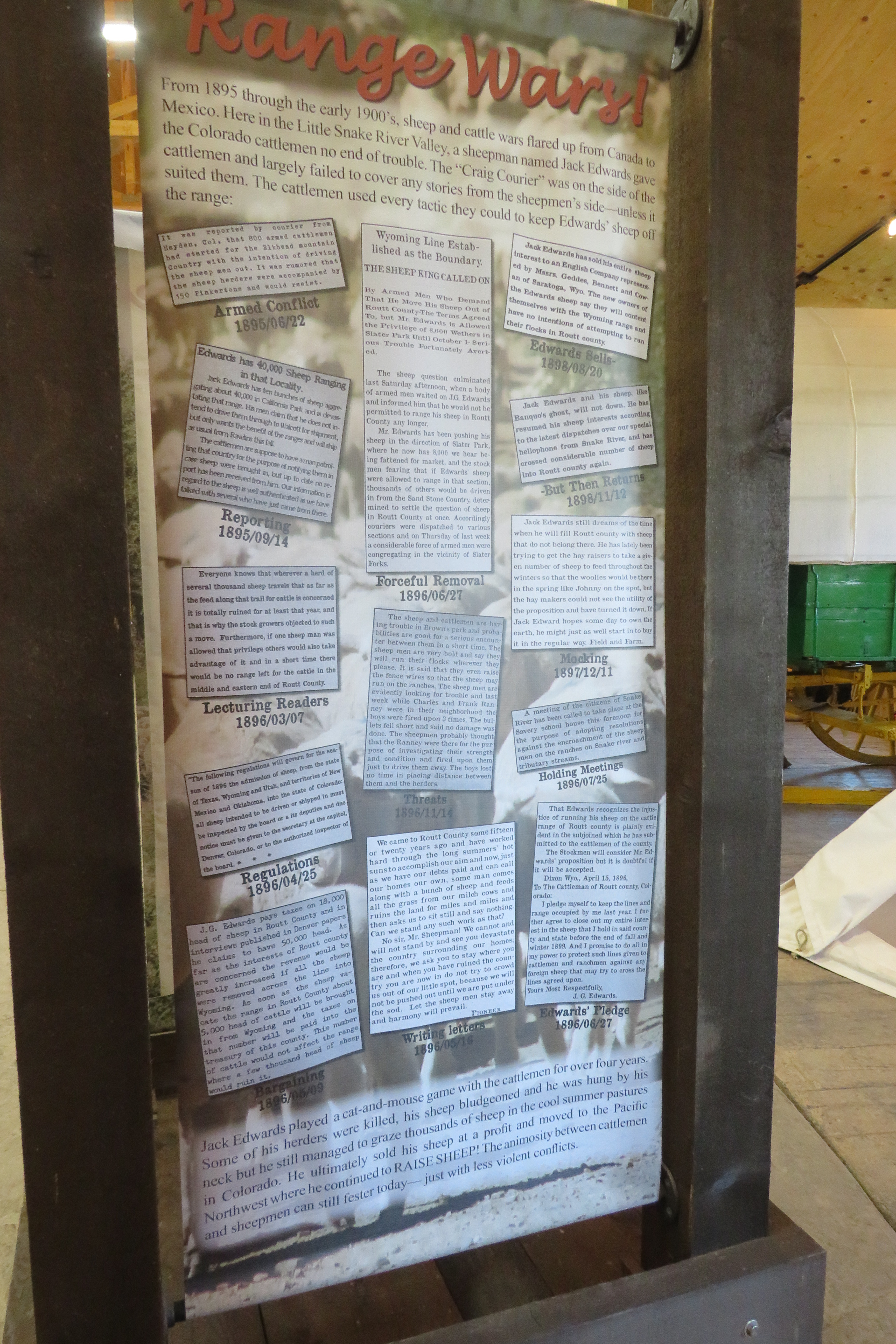 We got to the museum and Lela gave me a grand tour of the place while the dogs waited peacefully (or not) in the shade. I saw a lot of stuff that related to my grandfather’s sheep businesses. I thought my tent was small until I saw that teepee that Granddad’s sheepmen slept in! The range war era has always been interesting to me – I wish I could ask my granddad what it was like. There was a lot of information on it here and I love the old sheep wagons!