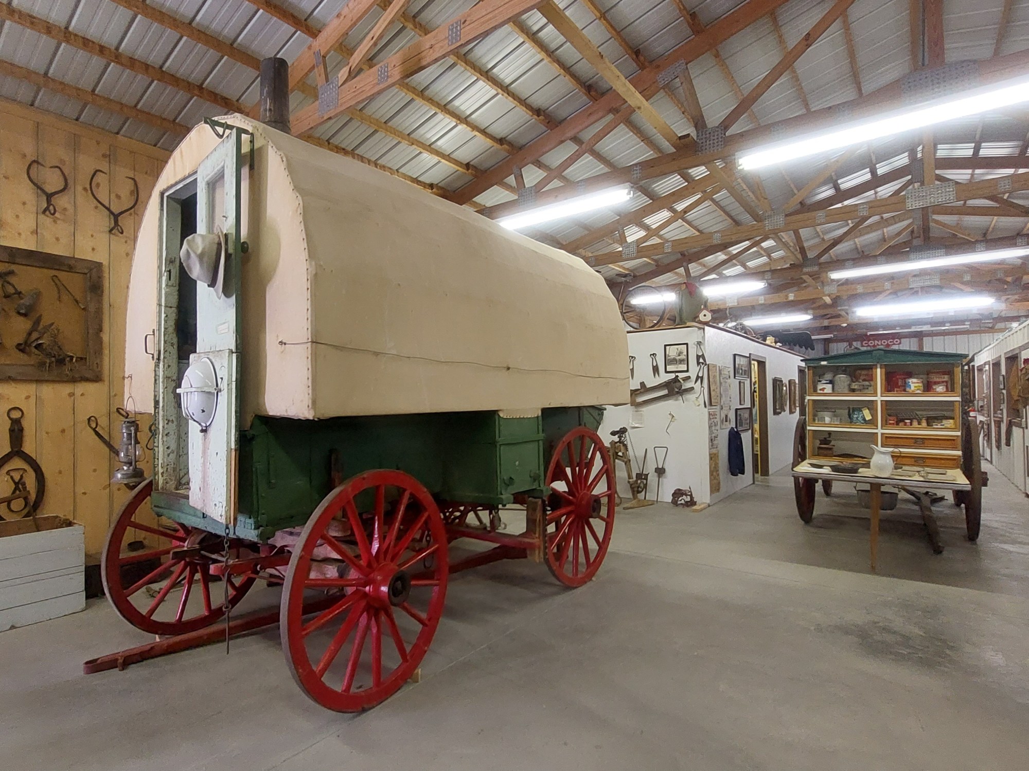 We got to the museum and Lela gave me a grand tour of the place while the dogs waited peacefully (or not) in the shade. I saw a lot of stuff that related to my grandfather’s sheep businesses. I thought my tent was small until I saw that teepee that Granddad’s sheepmen slept in! The range war era has always been interesting to me – I wish I could ask my granddad what it was like. There was a lot of information on it here and I love the old sheep wagons!