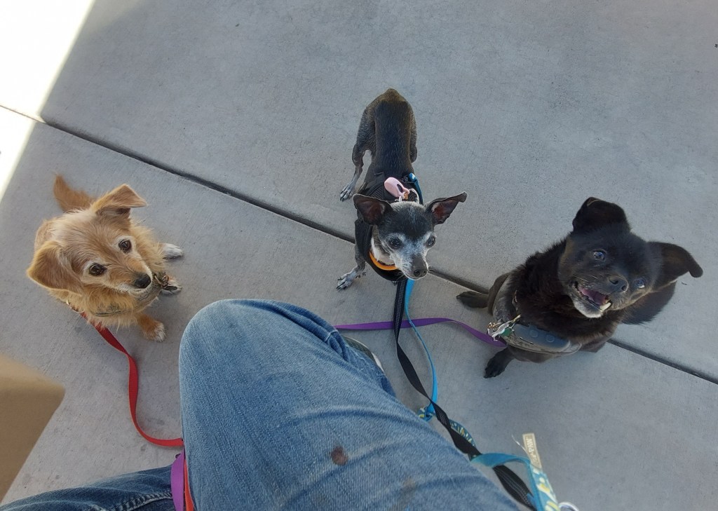 We stopped in Glenwood for “real” lunch. When was my last real meal? Only yesterday in Ft Collins – but it felt longer. I was nervous about letting Cimarron out of the car. I felt awkward with 3 leashes, again. She liked hamburgers and ice cream, though. So, I think she is enjoying hanging out with us a little. I walked the dogs around to potty – but Cimarron didn’t. That would turn out to be a mistake later.