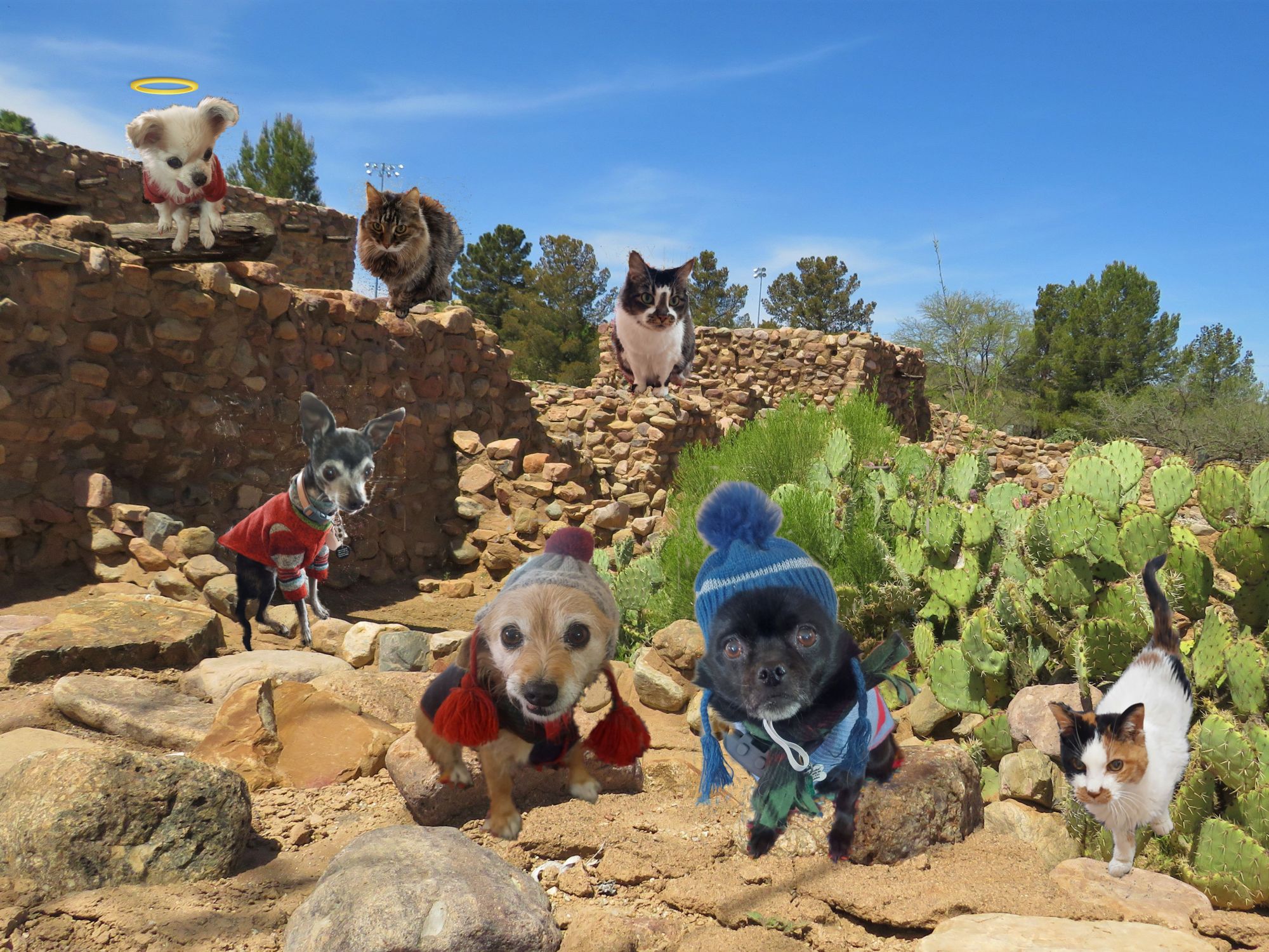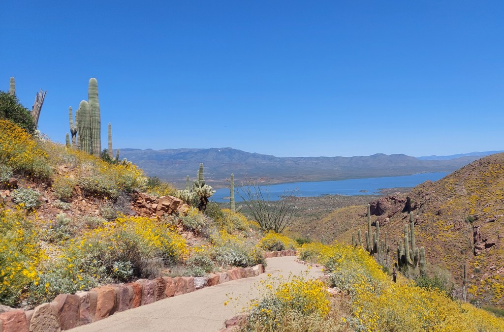 It was between bringing Koko home and taking her for surgery that we took our annual April Arizona road trip. It was a fun trip – no brand new stops this year, but a lot of old favorites in a new order of appearance. It was great to be away from the never-ending winter and the superbloom near Tonto National Monument was something I won’t forget. The pups got a chance to bond!