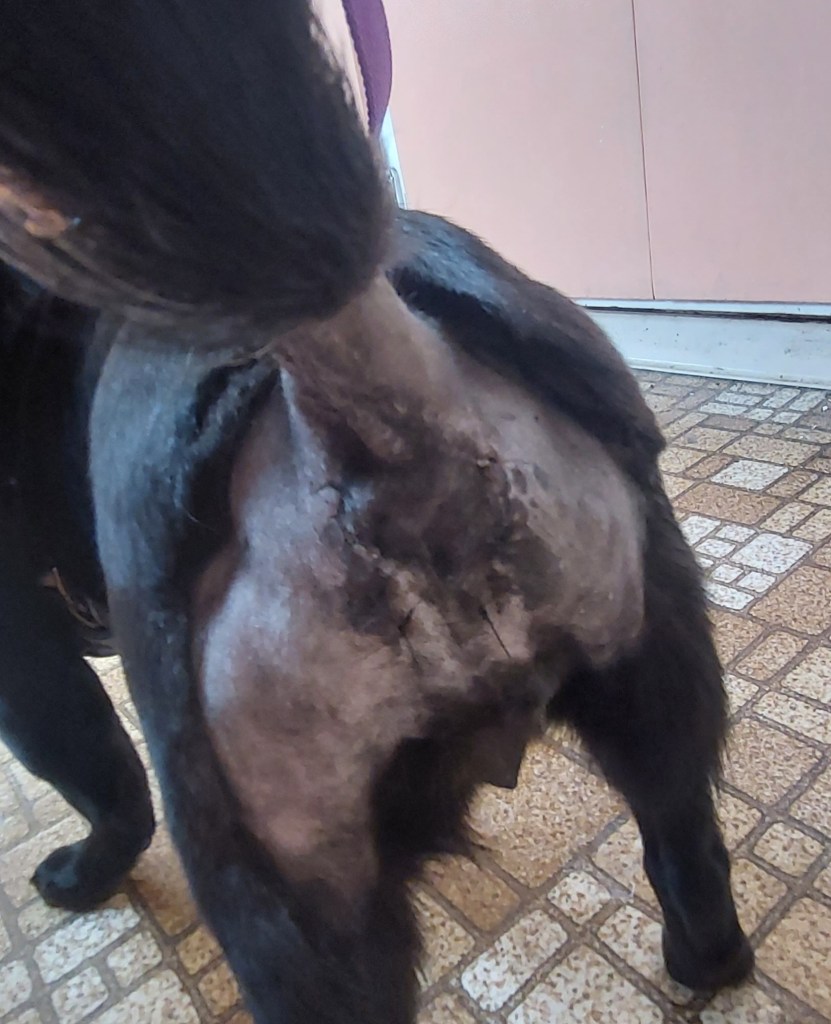 It was a cold, wet spring. It felt like winter would never end. Losing Sazi threw me into depression and, after much deliberation, I decided to take on a little chi mix hospice dog in April to help ease the pain. Kokopelli was thought to be 12-15 with such a bad heart that she couldn’t be spayed or have the other surgeries that she needed. She came from a place called Harley’s House of Dreams in the Denver area but originally was rescued from a hoard in Texas after having many, many litters. The rescue got an echocardiogram on her just before I adopted her that cleared her for surgery. I ended up taking her to a vet surgeon in Carbondale to have her bilateral perineal hernias and umbilical hernia repaired. She was spayed and had huge ovarian cysts removed. Despite 2 weeks of strict crate rest and a 12-16 week rehab, she decided to live. And with gusto – she is the family comedian. Her DNA says she is primarily Chin-Chi-(Chow.)