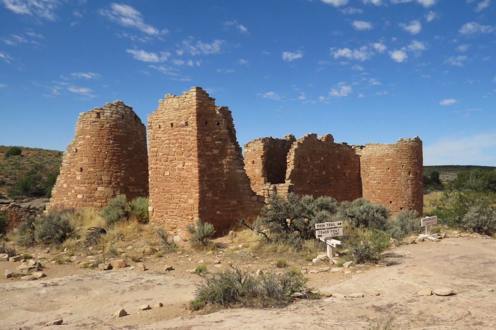 A couple weeks later, we took our annual trip to Hovenweep National Monument. There was some fall in the air by then, but still warm and windy during the day. One day, there was cloud cover and no wind and we got in a longer hike to the Holly ruins. I was scared to death that Cimarron would back out of her harness and run away, but she seemed to enjoy herself. And, that concluded camping season.