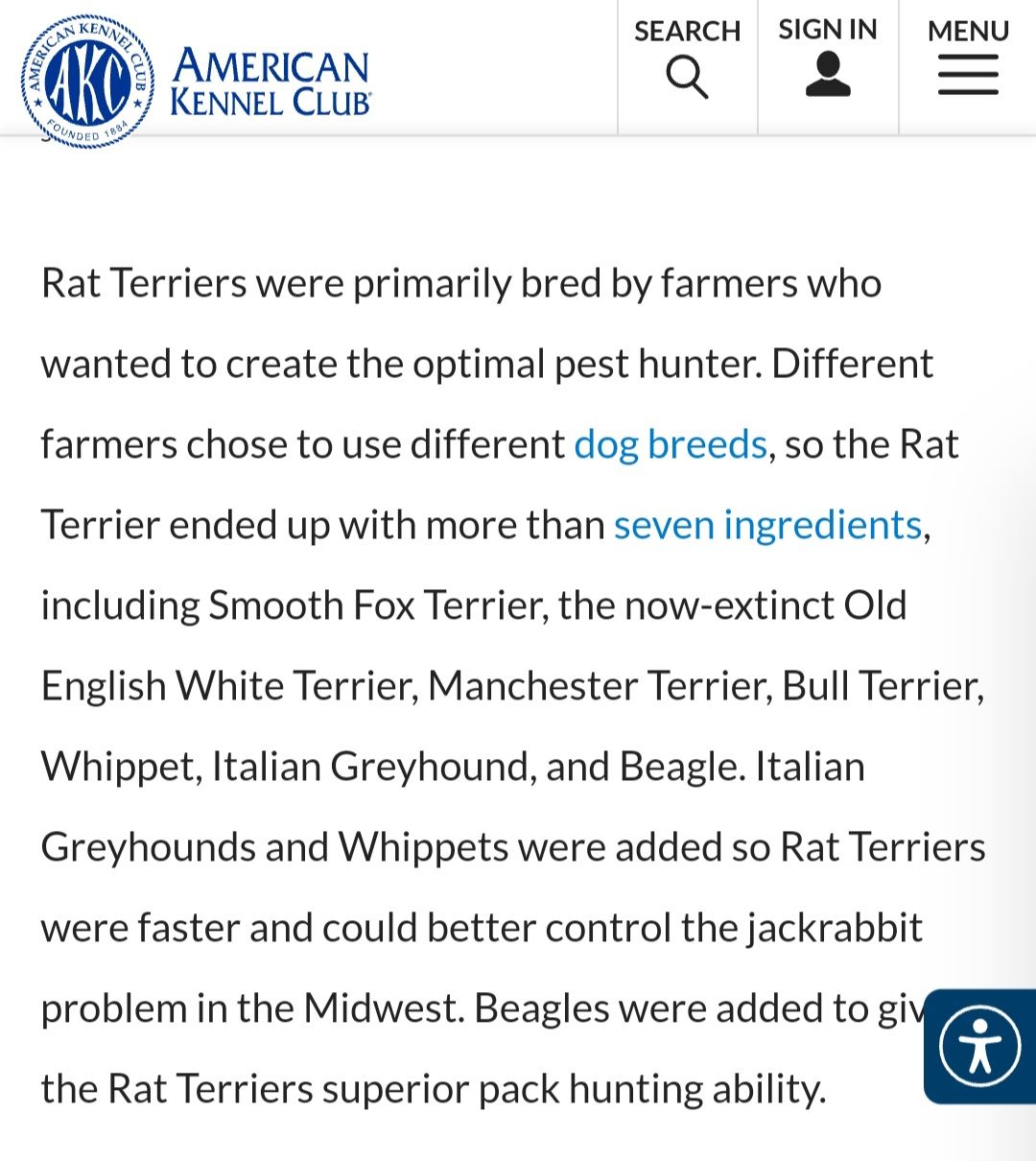 Above is some info I found on the IGGY/Rat Terrier relationship. It doesn’t take much DNA to influence phenotype.