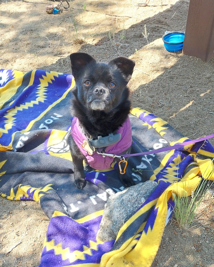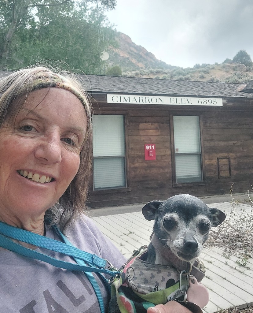 This is another “close to home” trip because I want to cut travel time and get the yard caught up. It works out – only 17 miles to this fun stop in the nearby Cimarron Mountains. And, Cimarron’s (the dog’s), birthday was just last week, so she gets to try out her new sleeping bag.