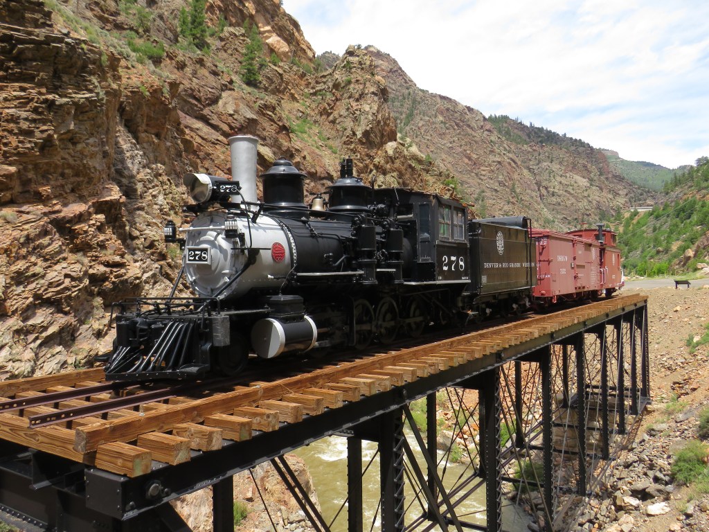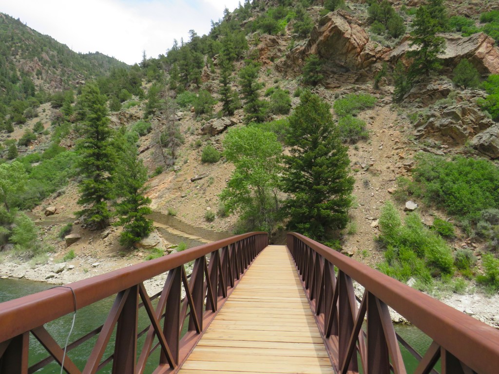 Our adventure included a walk through the railroad exhibit and a hike on Mesa Creek Trail/Morrow Dam. It was windy, but not hot. We didn’t walk terribly far – I am still recovering from a day chopping hedge in 90-degree weather a couple days before. Oh, yea, and the broken toe is still healing. But, Koko’s heat tolerance (or lack there of) due to her short snout is a primary concern. It is a beautiful walk, nonetheless. A fun day trip or short camping trip. All dog-friendly. In fact, the Curecanti is a US Bark Ranger site, but the visitor’s center is on the Gunnison side of the park.