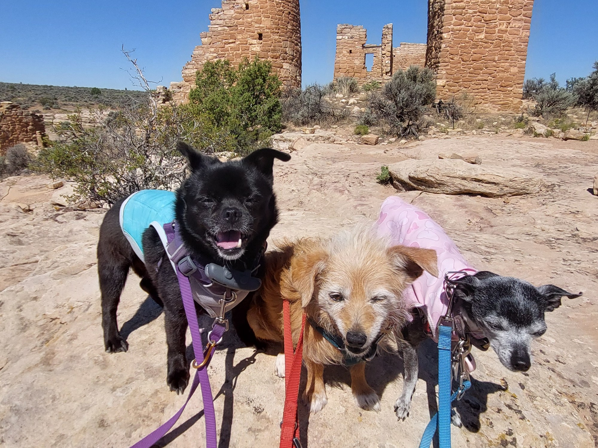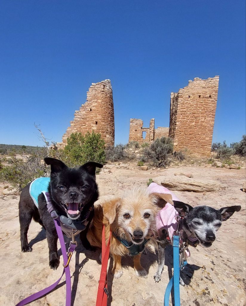 The hike is 100% (leashed) dog-friendly. The sun isn’t. I’d say we should start earlier but the dogs also have med schedules. We shortened our hike and only went as far as Hovenweep Castle today.