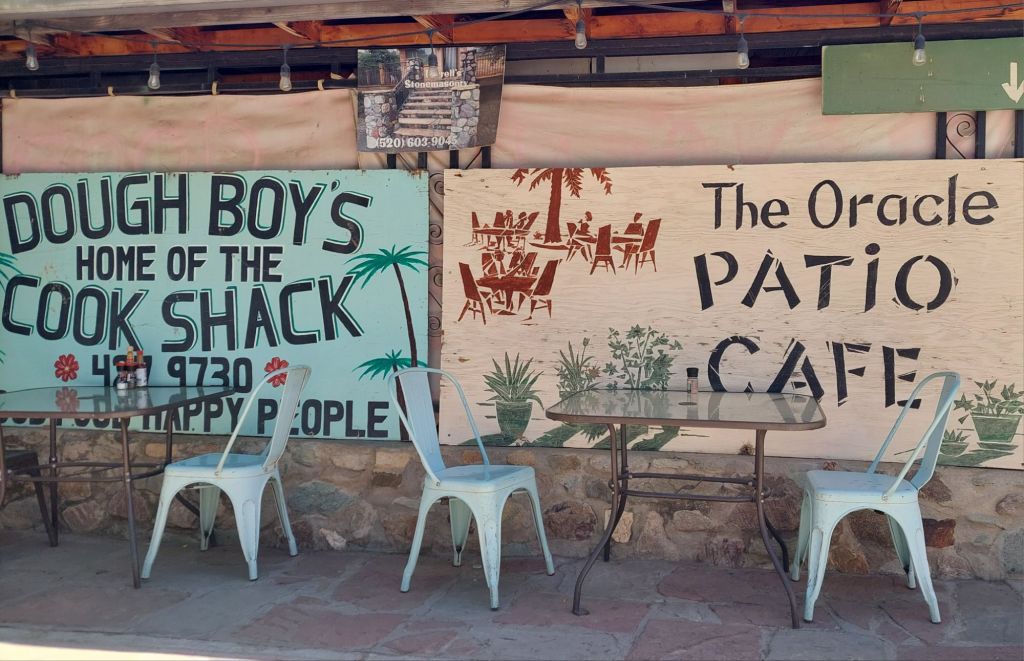 About 7 or 8 miles down the road is a town named Oracle. A State Park by the same name is located there. I stopped there last year for the first time. This time, I drove through the community before stopping for a hike. This town of 3-4 k has pastry! Too bad you can’t see the sign from the highway. There is also a patio restaurant where we had an excellent lunch – it’s dog-friendly. Definitely worth a stop.