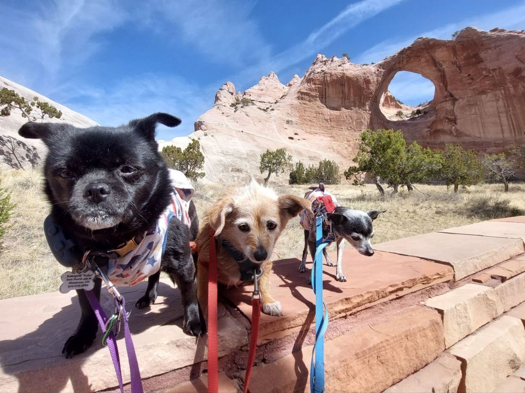 Antelope House has a short hike that mostly slickrock. More info at this link. It’s about a mile and dog friendly. The vibes are absolutely stunning. This is my favorite of the overlooks. The wind was fierce, though. So, the dogs were a little bit freaked out.