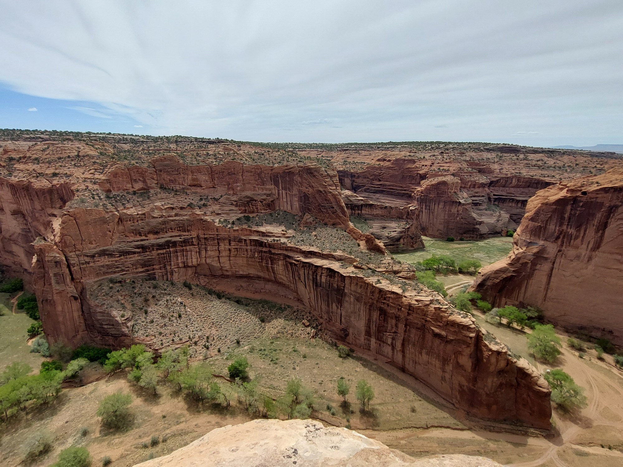 By the time we finished, I decided I felt a tad better and we would head towards Canyon de Chelly. If I got worse, we could ditch the side trip and take a quick, boring route. I was also worried about wind and visibility. I’ve had a couple bad experiences driving through the Four-Corners in windstorms.