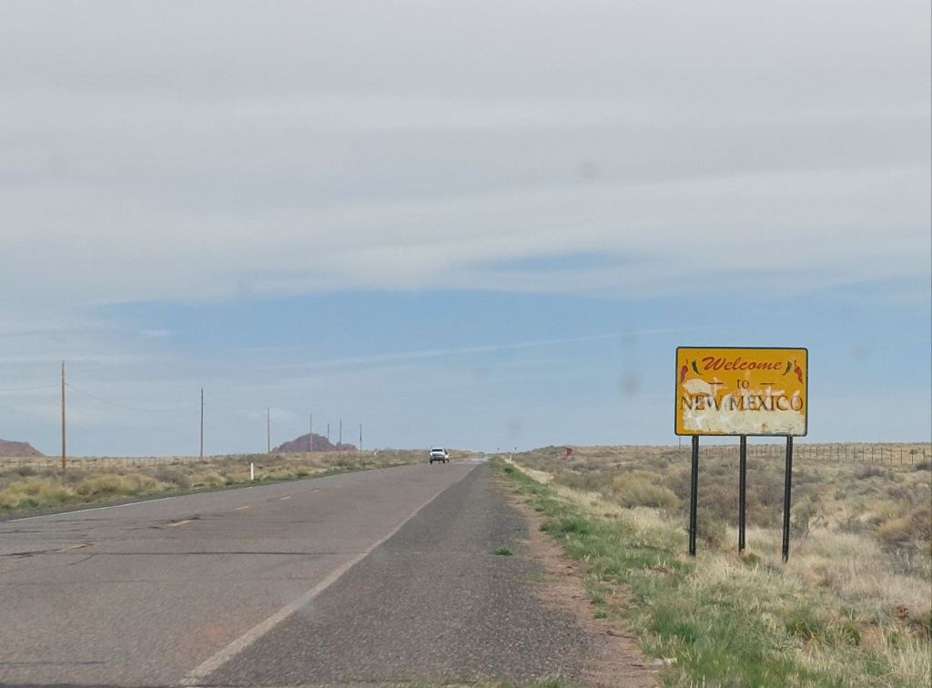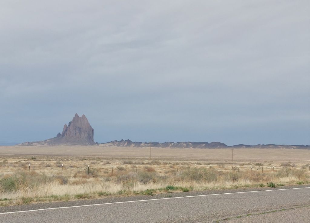 The summit has pine trees, a stark contrast to the red rock just minutes before. In a few miles, you see the Shiprock in the distance. The road flattens out and you cross into New Mexico. In about 20 miles, it a left turn on to US 491.