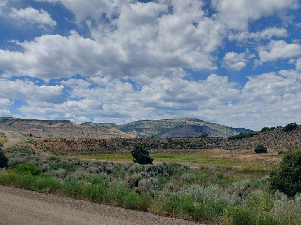 Day two was somewhat of a repeat. We went to Gunnison and had food at an all-day breakfast place. We also explored the Gunnison farmer’s market and other downtown stores. We shopped at the Pawsitively Native dog store and I got some yummy treats for our Utah trip next month. Then we drove to Hartman Rocks for a hike, but it was too steep and hot for Koko. So, we went to West Tomichi Riverway Park in Gunnison instead. There wasn’t much hiking here, either, but it was pretty and green.