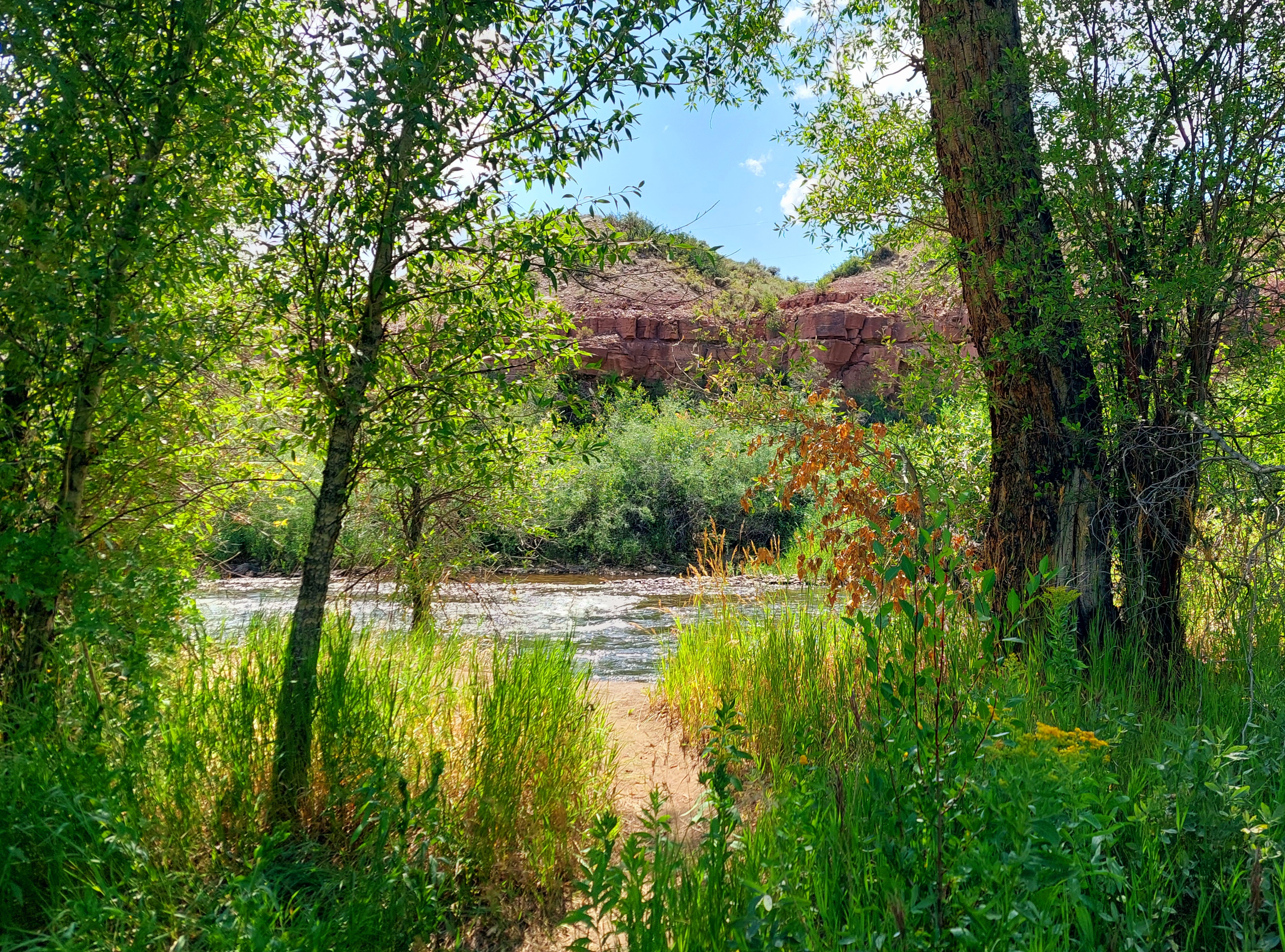 Now, it is time to hike. We headed to one of my favorite hikes in the Curecanti: Neversink. It’s flat and follows the river. Perfect for senior dogs. I was taken back by how green it is. After that, we returned to camp and I played with my new solar charger.