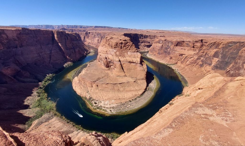 Tonight’s blog will be short because the day was long. We took highway 191 to highway 98 north to highway 89. Here is our route for the day. Then we stopped at Horseshoe Bend near Page, AZ. Now, that place has some Frisson. Enough that it’s become a bit too much like Disneyland.