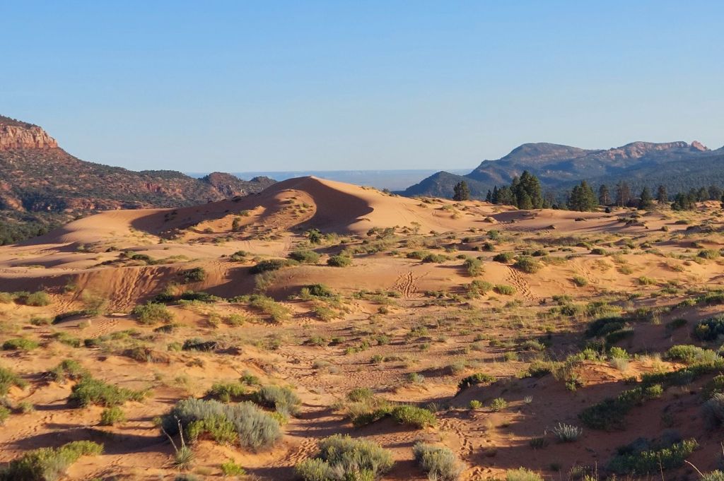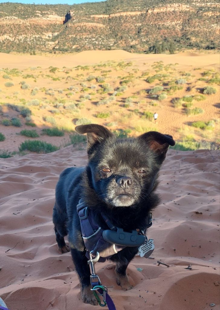 The coral sand is so distinctive. The first time we came, Kachina was still half puppy and loved playing in it. I’ve done the nature hike packing 2 dogs – must have been 6 years ago – and it’s fun, but go early. I want to play a bit tomorrow before we leave, but our main day hike tomorrow is Red Canyon.