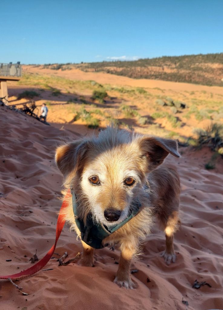 The first time Maizzy (my first travel companion dog) and I went must have been over 10 years ago. I’d check, but no internet tonight, so this won’t publish until tomorrow. Anyway, a woman at the Page Chamber suggested it as a place I could take my dog. I don’t remember exact details but the trail was much less developed, pretty much sand. No admission booth that I remember.