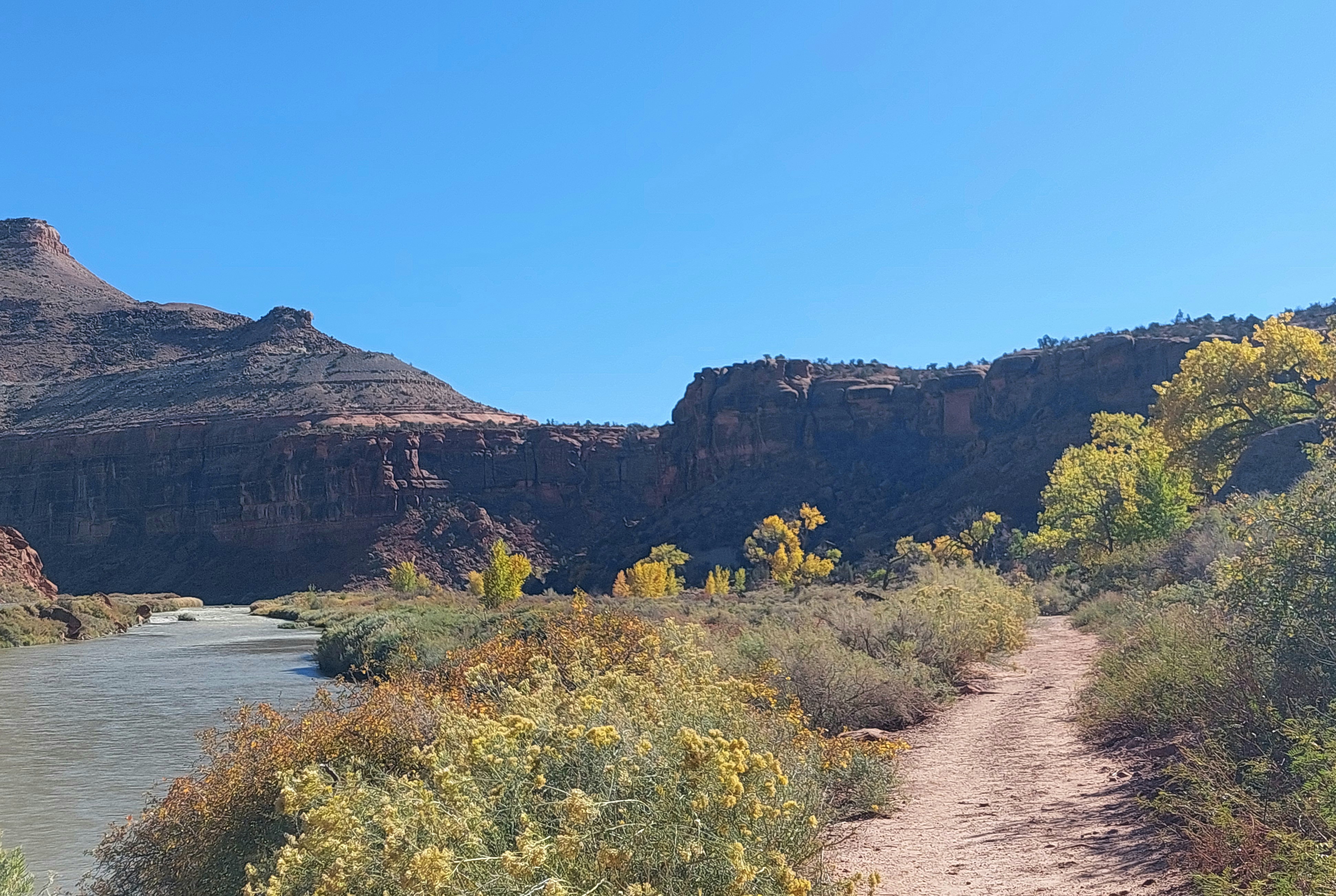 Camping season ended last month. It always goes too fast. Then comes October: Canyon hiking season. Unfortunately, this year has been filled with much-needed home upgrade adventures that have tied me to home. I just couldn’t go all fall with no canyon hikes. So, a couple of days ago, I loaded up the dogs and headed to Dominguez Canyon.