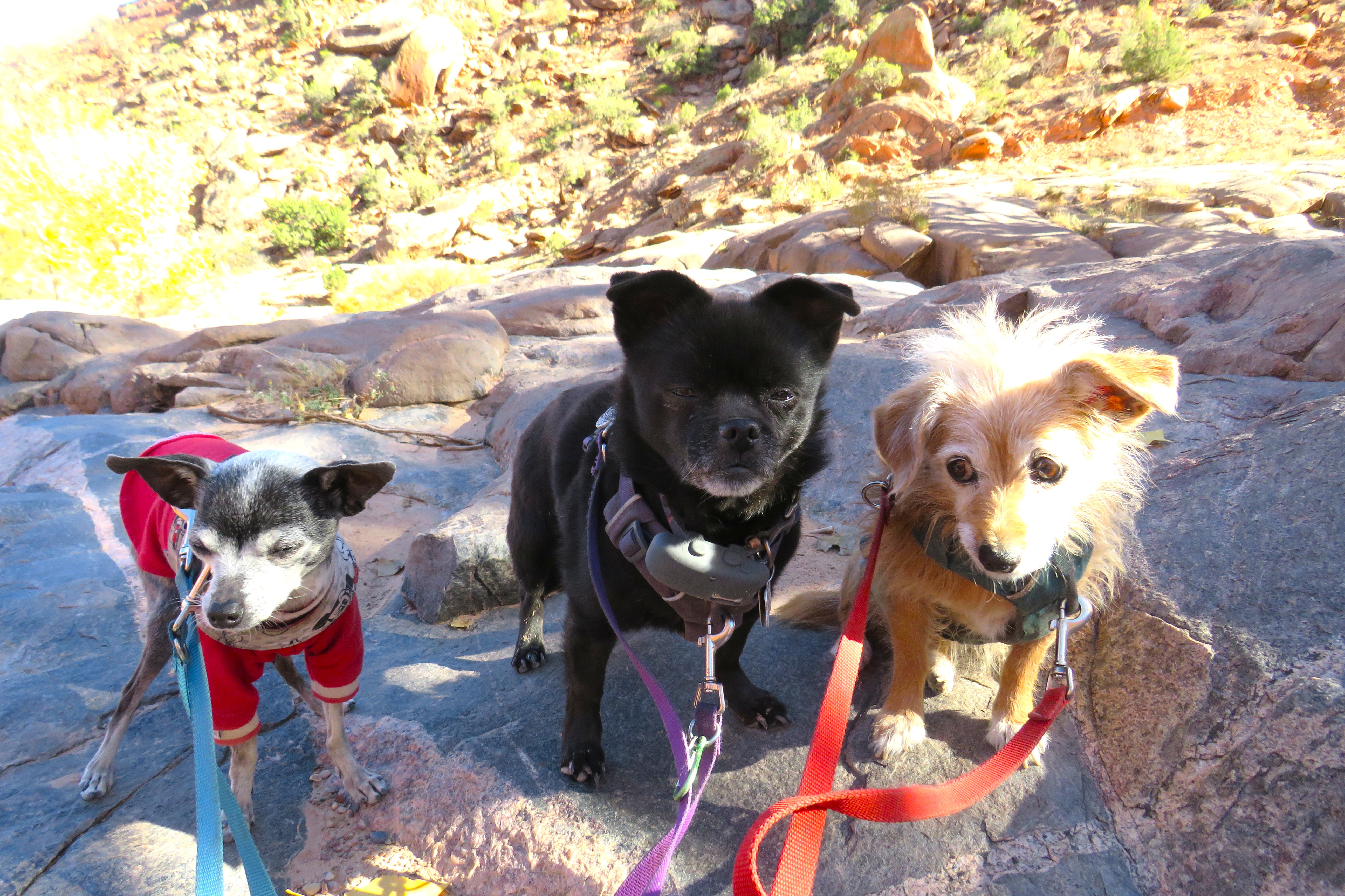 If you search this travel blog for Dominguez Canyon, you will find a lot of posts about it because it is my local favorite. Why? Because I feel like I am in Utah or Arizona and not 40 miles from home. The length of the hike is about right for the senior dogs, as well. We go from the parking lot to the waterfalls. It takes us about 3 hours with stops and short legs.