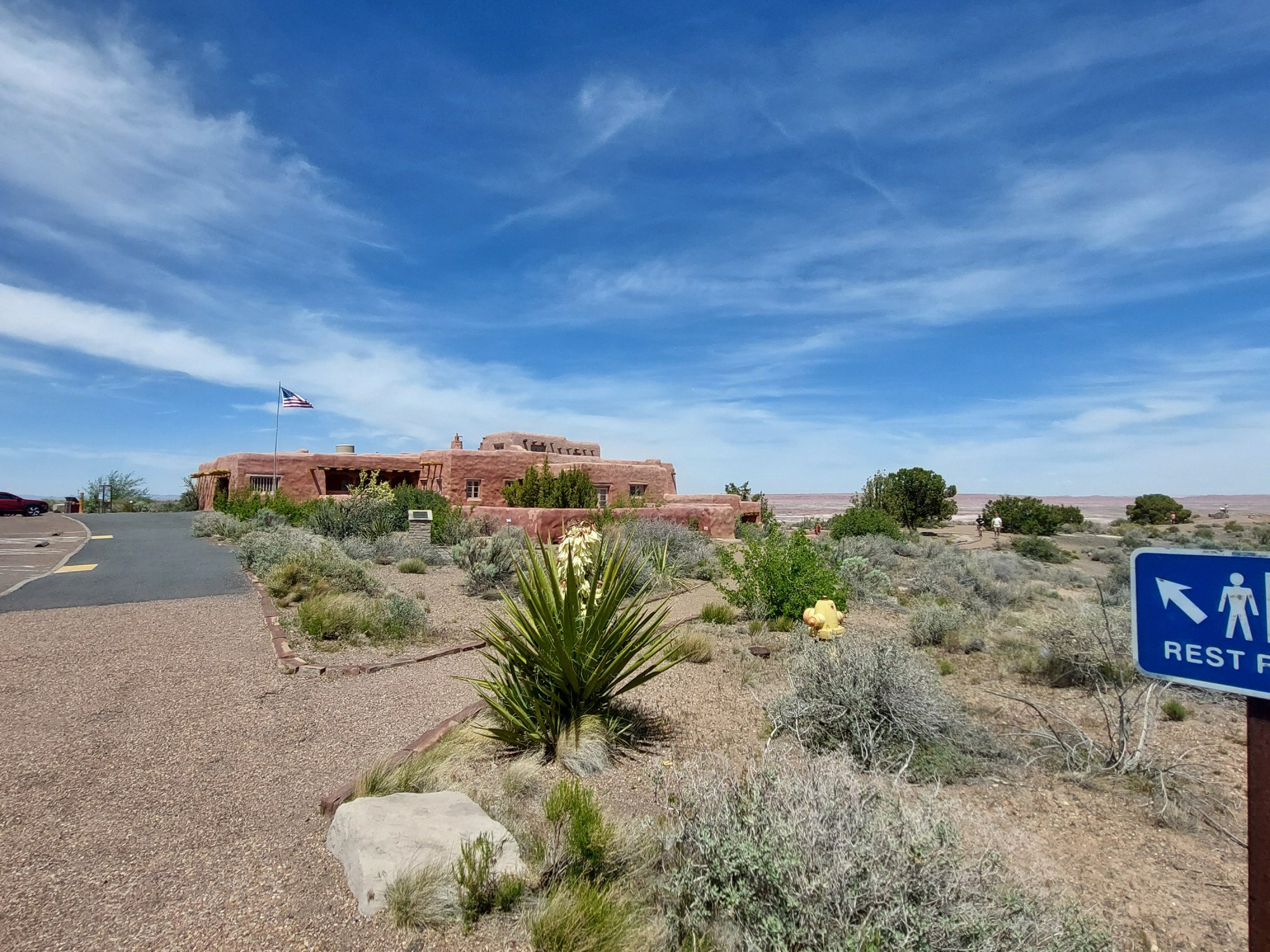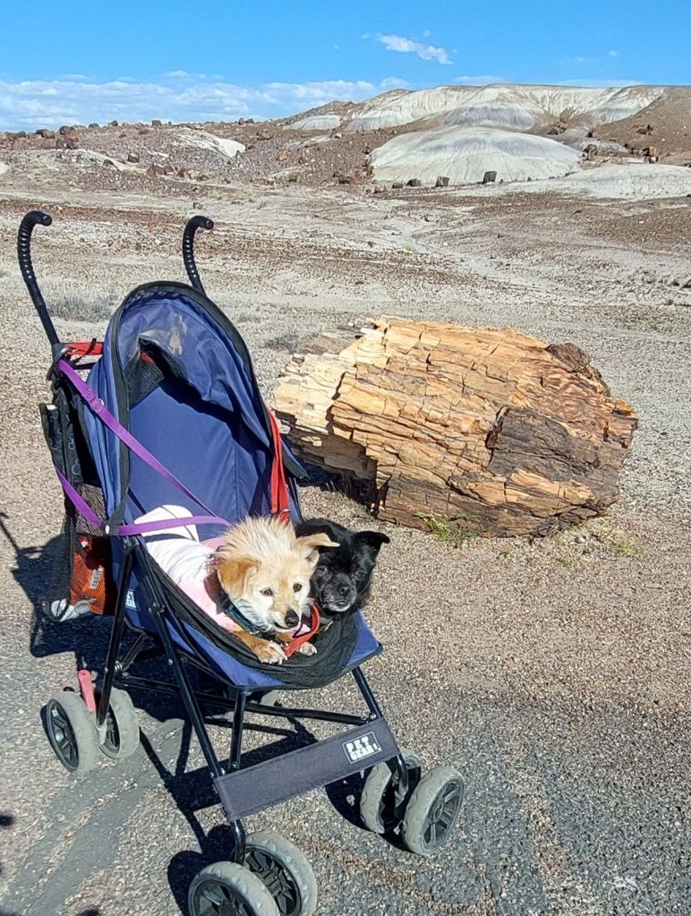 We started not far away in Chambers. It’s only about 20 miles to the main entrance off I-40. I stopped at the concession place where the main visitor center is under construction. I decided to grab a burger and have a picnic at Kachina Point. The pups were happy with that decision.