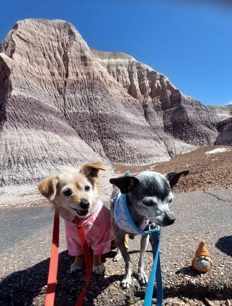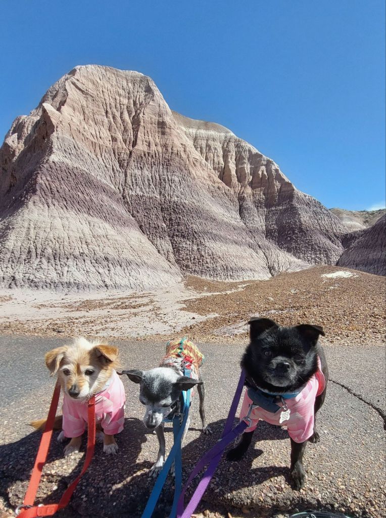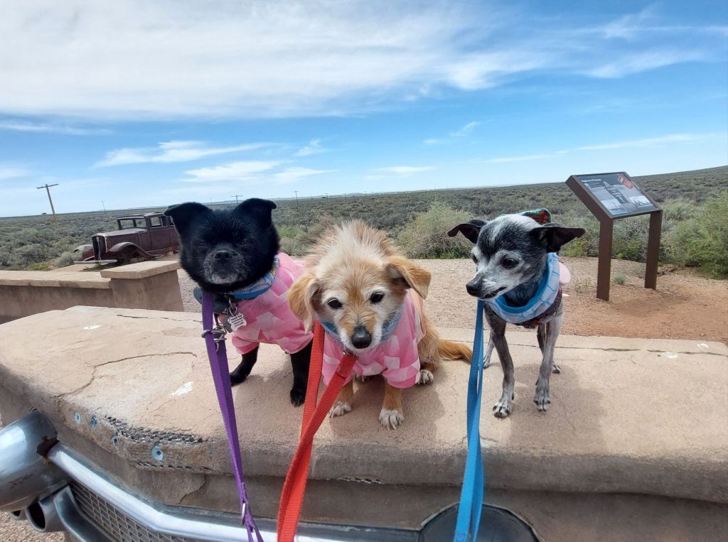 From there we traveled to the Route 66 turnout for the annual dog photo. I have photos of my pack over the past 12 years. When you adopt seniors, it’s never long enough but something about the photos makes it feel like they are always with me.