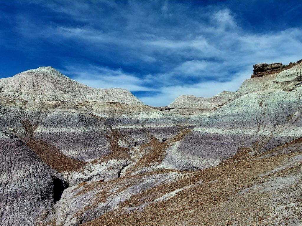 If day 1 and 2 of our Hoodoos, Haboobs and Hound Dogs road trip seemed like we were flying over miles of red rock territory, today felt like we got grounded. We spent the day at Petrified Forest National Park. It was truly a hoodoos, wind advisories, and hound dogs kind of day.