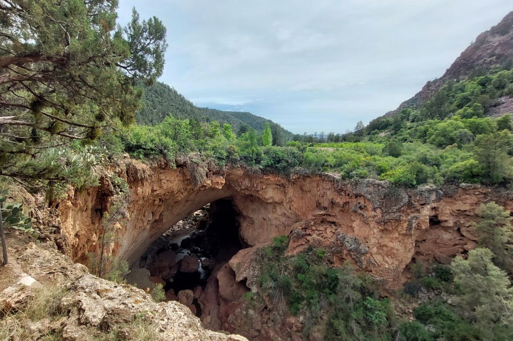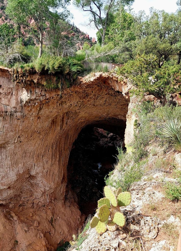 Then, on to Payson, except we took a detour to Tonto Natural Bridge State Park. The bridge is in what’s called the transition zone or Central Highlands. It’s about 10 miles north of Payson on mountainous roads. The road into the Park is a steep drop-off from the main road.