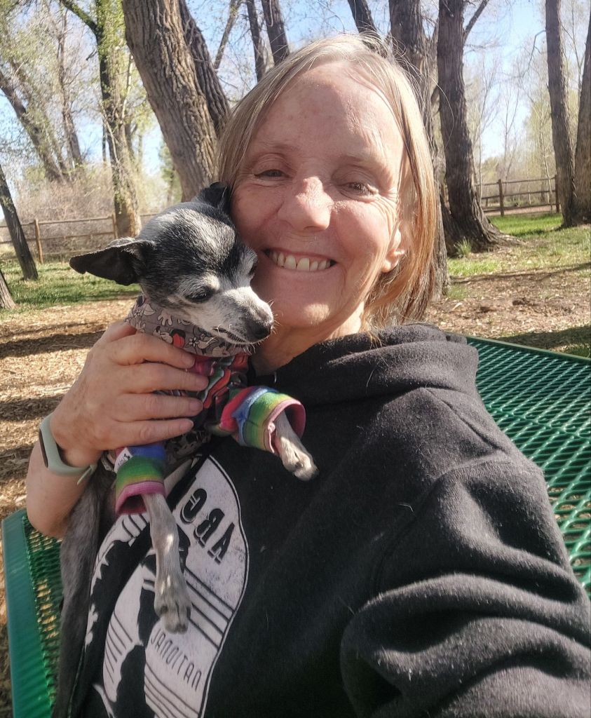 By the time we arrived at the Salt River Canyon rest stop, Cimarron was a bit more settled. She let me carry her around and seemed to enjoy the diversion. But, she wouldn’t put weight on the leg.