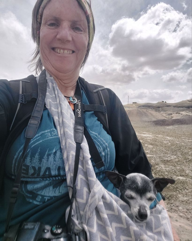 It’s our 3rd or 4th trip to Bisti. We had a picnic first. Just like 2 days ago, Cimarron got bitten by an ant. She panicked, again, but not as bad as the fire ant 2 days ago. It’s a PTSD type reaction, most likely, to her IVDD nerve pain. Anything that sends a sharp pain up her leg is panic. I need to see her vet about more anxiety meds, because that too much work for a 15 year old heart with valve disease.