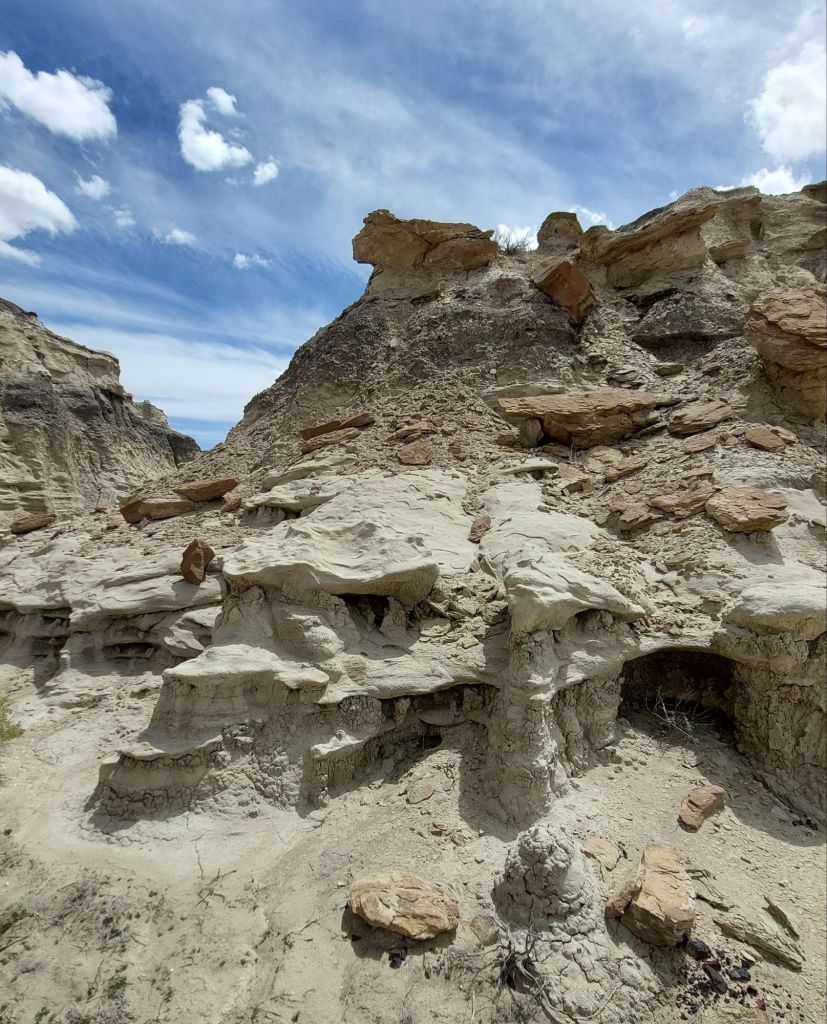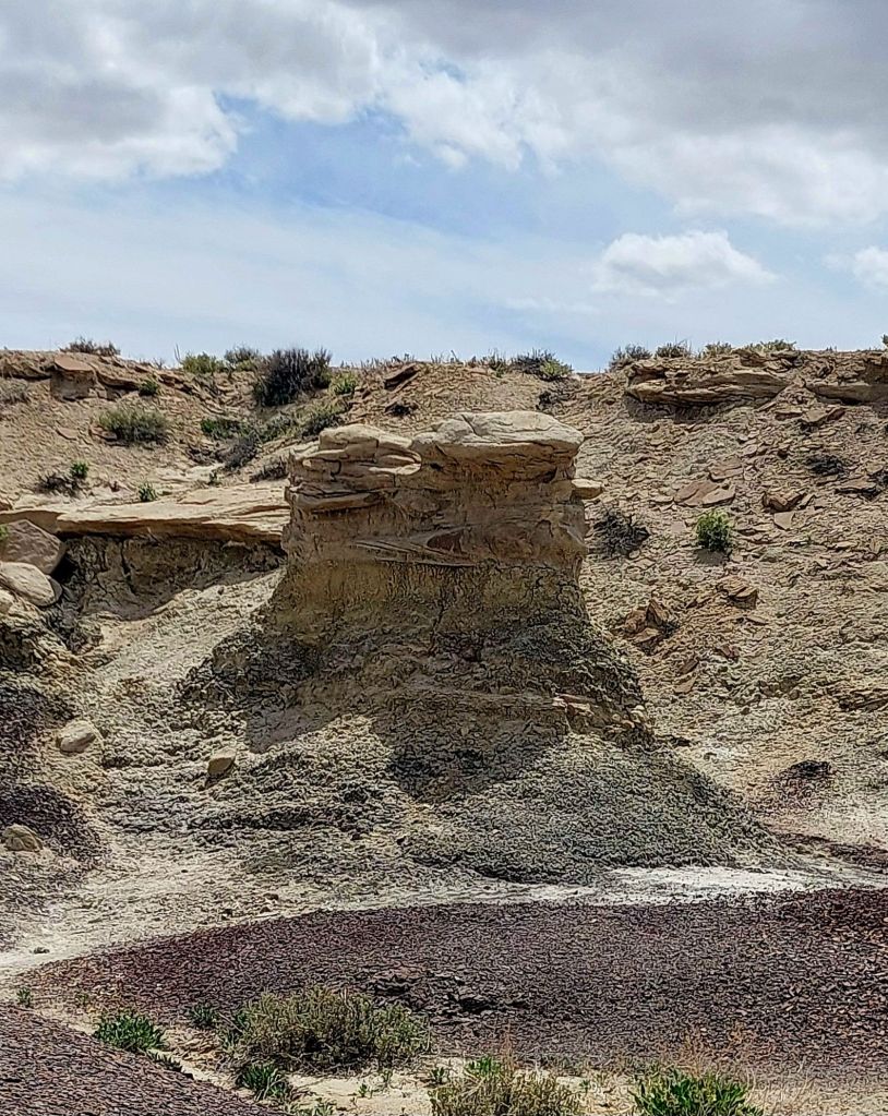 Between mile marker 70 and 71, you arrive at Bisti Badlands. Imagine and undersea garden with slippery mud at the bottom. That’s where we would be if we hiked here 70 million years ago. As the sea dried, the formations were created. There were also fires that baked the clay resulting in the red rock that is scattered over the landscape.
