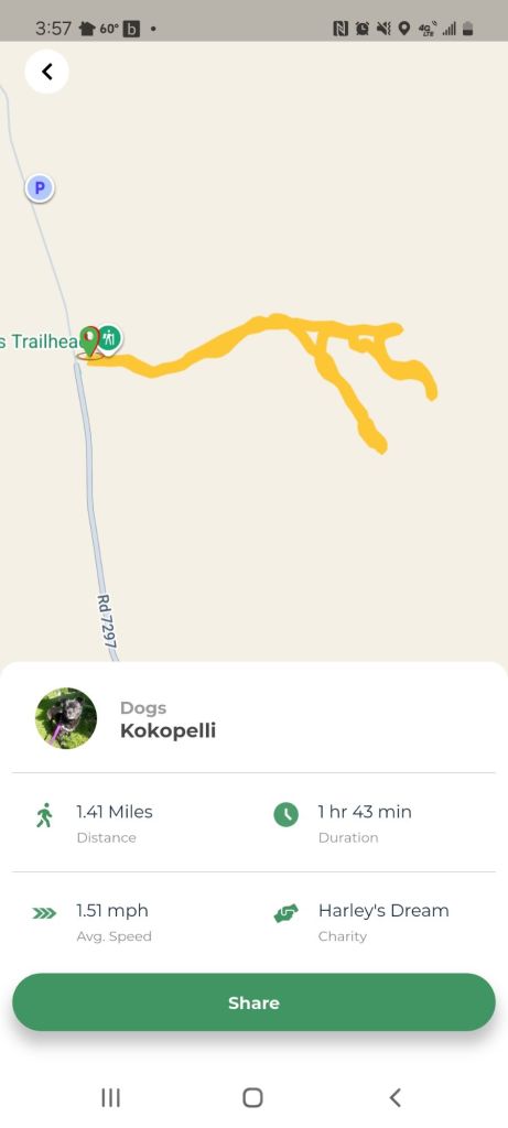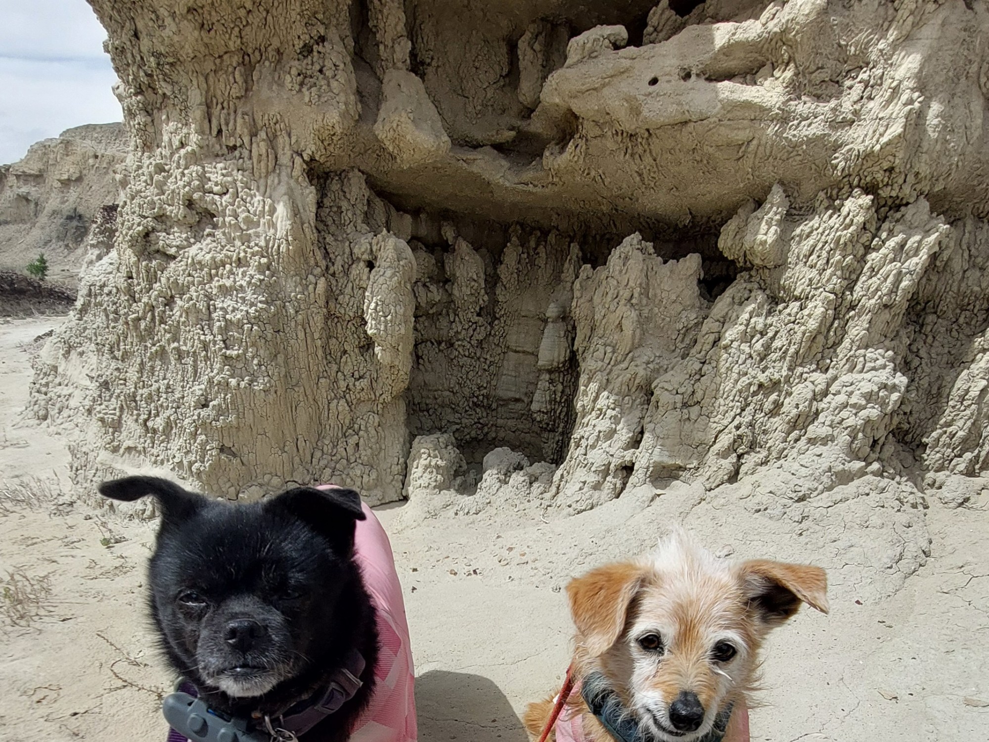 I think it was my attention that got distracted. We usually find a side alcove to explore vs the main wash. But, I couldn’t find the one from last time. I compared our Wooftrax maps from both days, and we stayed on the main wash way further this time. But, it simply gets too rocky for the pups before we hit any of the iconic Bisti formations.